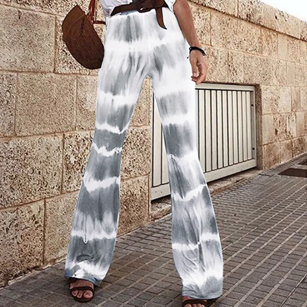 Брюки-клеш Женские, с принтом в стиле ретро, в полоску, с высокой талией, тонкие, повседневные, 2020