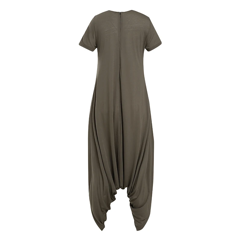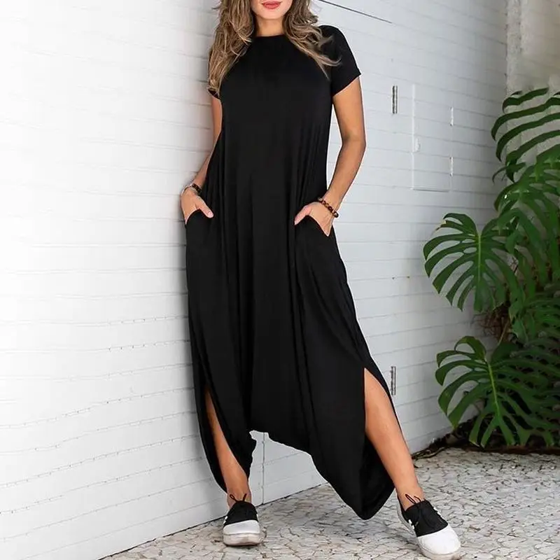 Женский комбинезон с заниженной ластовицей, асимметричный комбинезон Celmia с коротким рукавом, повседневный однотонный комбинезон-Палаццо на молнии, винтажный, 2021
