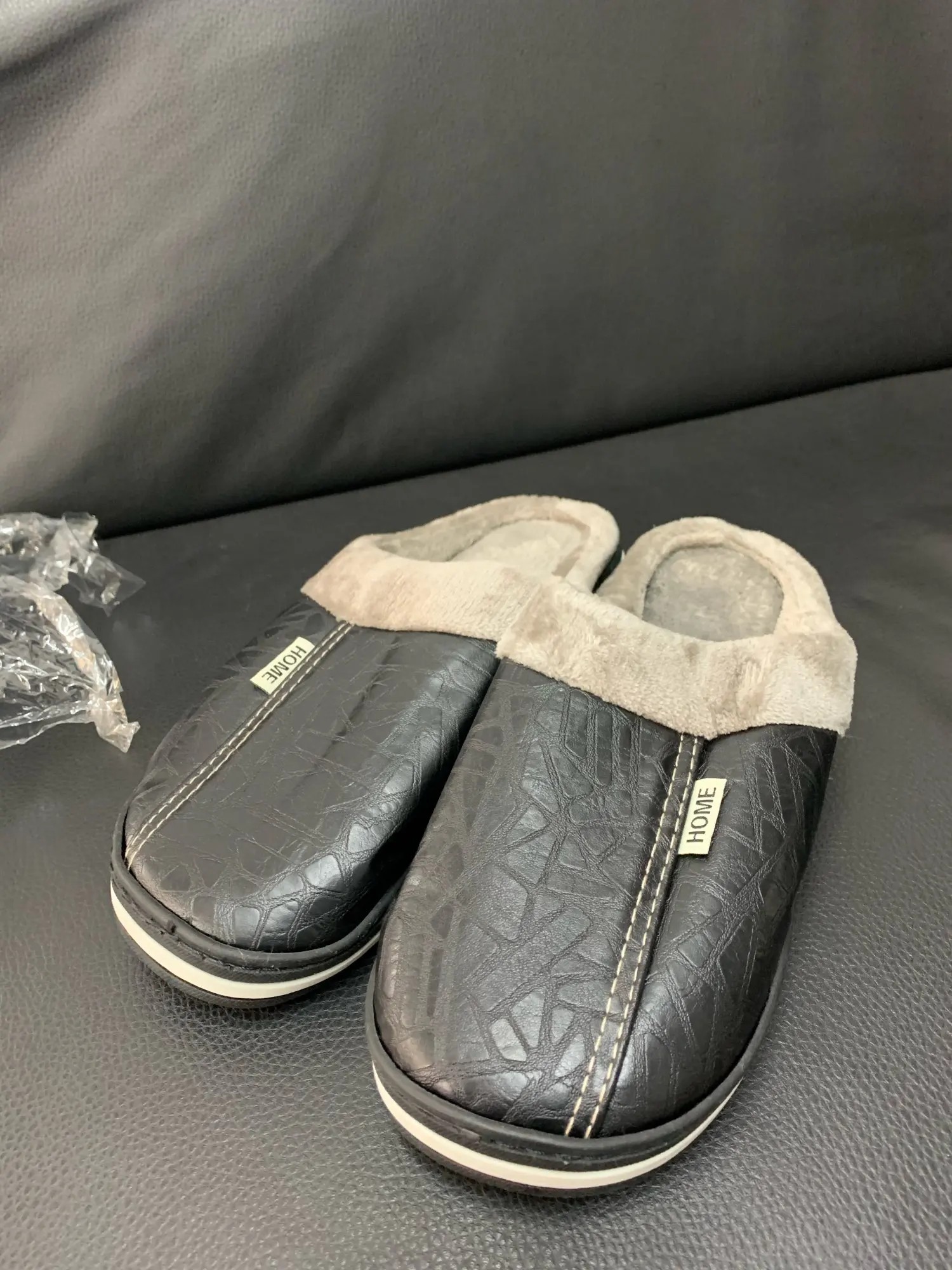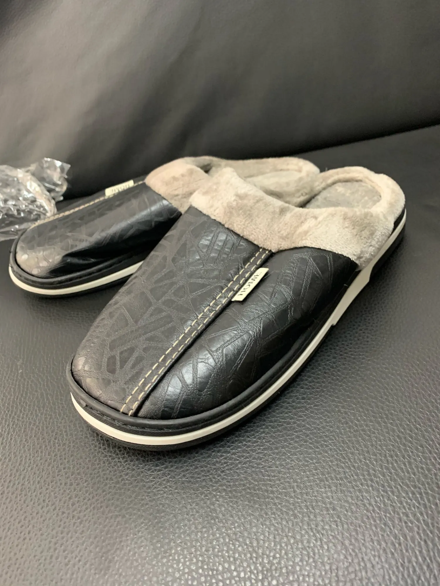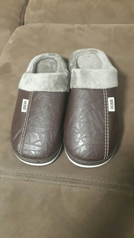 Мужские домашние тапочки, зимние теплые домашние тапочки, толстая подошва, плюшевые Водонепроницаемые кожаные домашние тапочки, мужская обувь из хлопка, новинка 2021