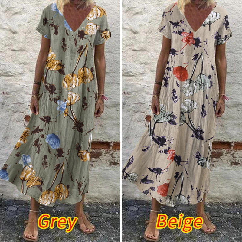 Сарафан женский, макси, с цветочным принтом, с коротким рукавом, большого размера, лето 2021
