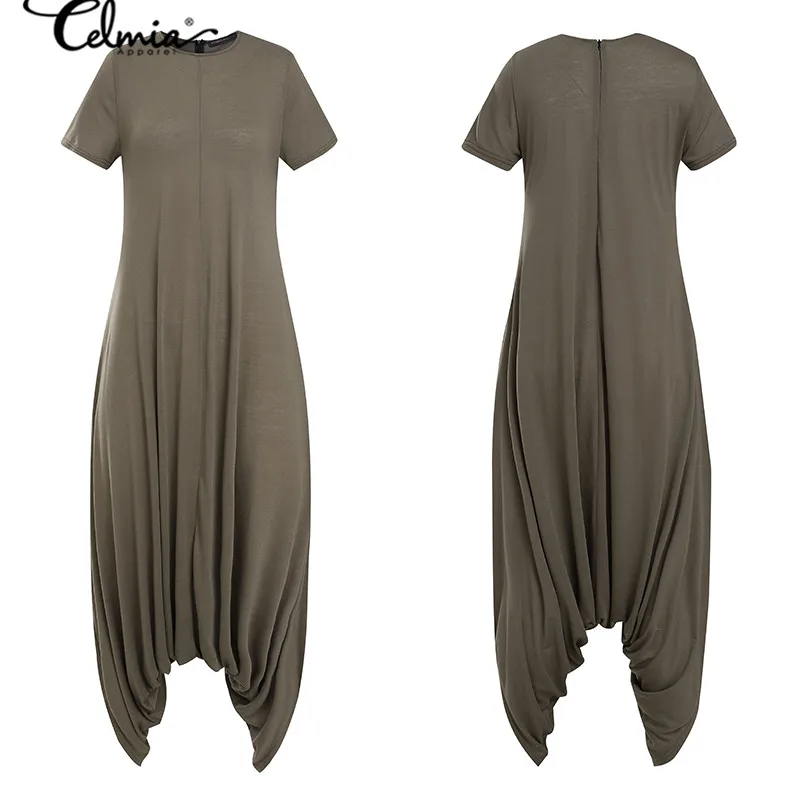 Комбинезон Celmia Женский Повседневный свободного кроя, модвечерние вечерний Асимметричный Длинный комбинезон с коротким рукавом, с круглым вырезом, однотонный Ромпер в стиле ретро, на лето