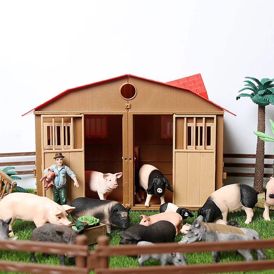 Имитация дикого кабана, wartog ферма фигурки животных игровой набор с забором дома сарая образовательная модель Фигурки игрушки подарок Fpr дети
