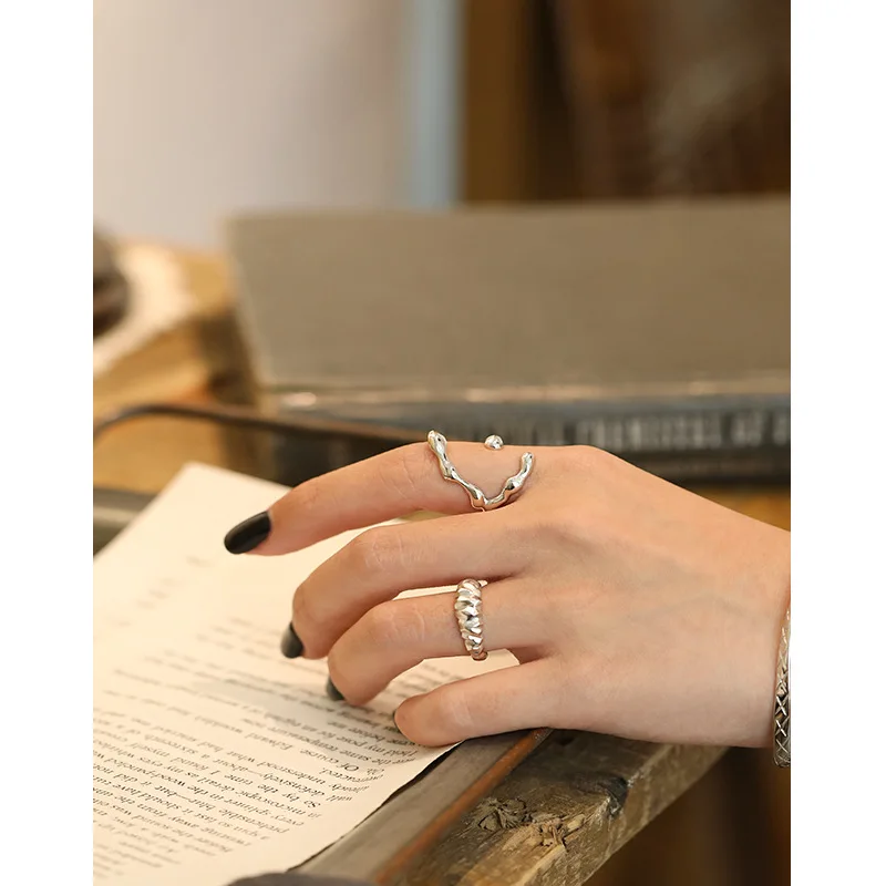 Смешанное хипстерское кольцо из стерлингового серебра регулируемое ...