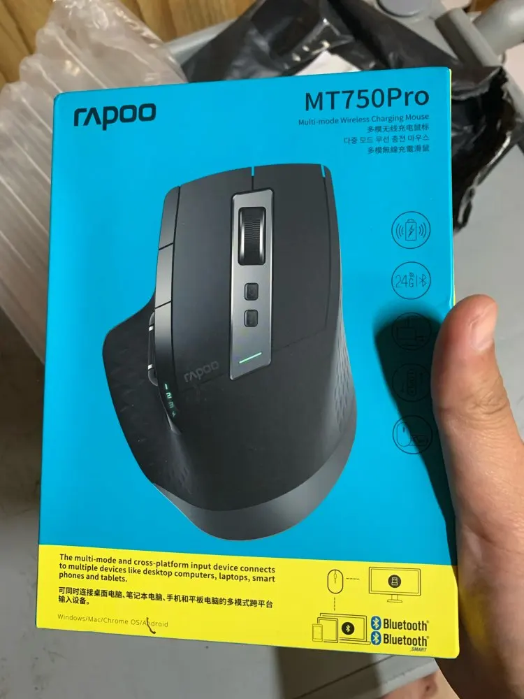 Плюсы: - Приятная по тактильным ощущениям; - В некоторых программах наличие бокового колеса дополняет функциональность; - Относительно тихая; - Возможность работать с несколькими устройствами одновременно. - Беспроводная зарядка. Минусы: - Из-за своего фарм-фактора мышка только для большой руки. Миниатюрным девушкам с ней будет не комфортно работать; - Кривое ПО, а конкретно под MT750Pro вообще нет драйвера. Кнопки приходится настраивать сторонними программами. - Решение сделать кнопки «вперед-назад» на левой клавише мыши – неудачное. Очень неудобно, на мой взгляд. - Отсутствие индикатора работы мышки. Иногда непонятно: живая она или нет; В целом, за свои деньги, мышка хорошая. Мне нравится. Для решения офисных задач – то, что доктор прописал. Исключительно. Для игр она не подходит. Доставка до Смоленской области чуть больше месяца.