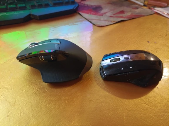 Нормальная мышка. Но не супер. Кнопки вперед-назад не очень удобно расположены. Аккумулятор не 450 а 350. Драйвера на Win10 не становятся. Беспроводная зарядка работает.На фото сравнение с mx madter 2s.