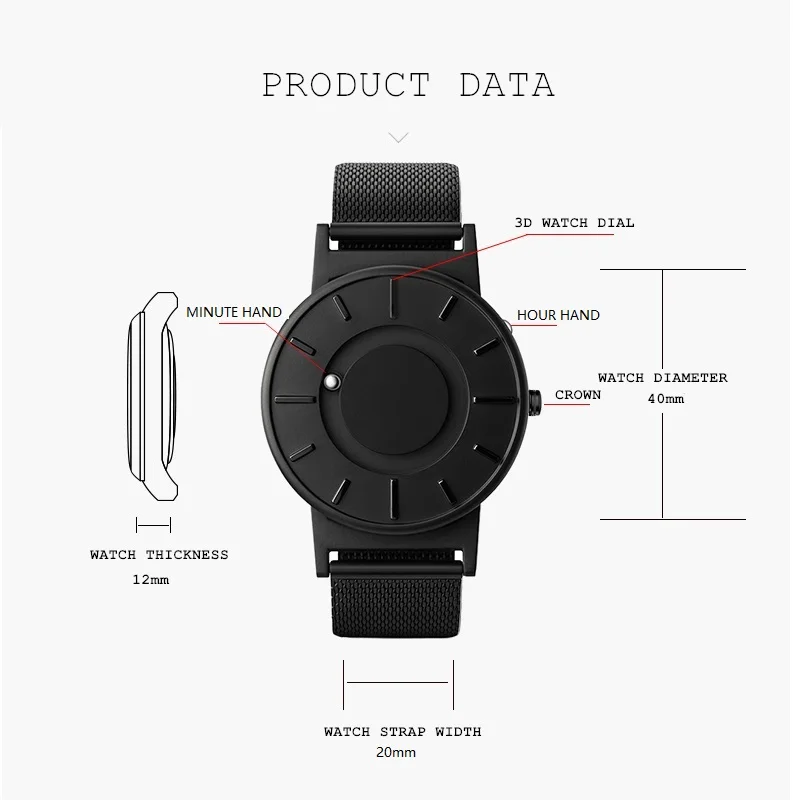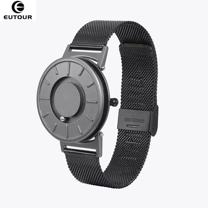 Часы EUTOUR E014 мужские магнитные, модные минималистичные черные с шариками из стали, без зеркала, с модным дизайном