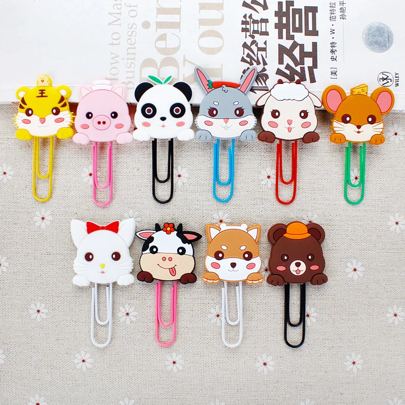 5 шт.лот милые Мультяшные животные силиконовые скрепки Закладка индекс учителя подарок закладки металлические школьные канцелярские принадлежности