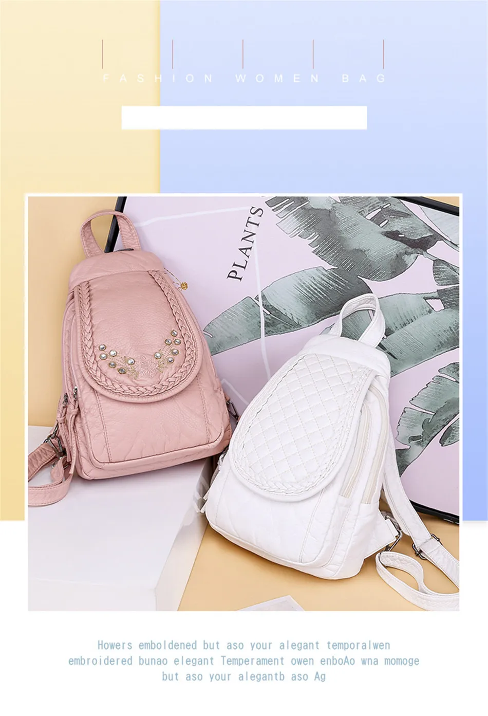 2021 мини-рюкзак, женские белые рюкзаки из мягкой потертой кожи, же...