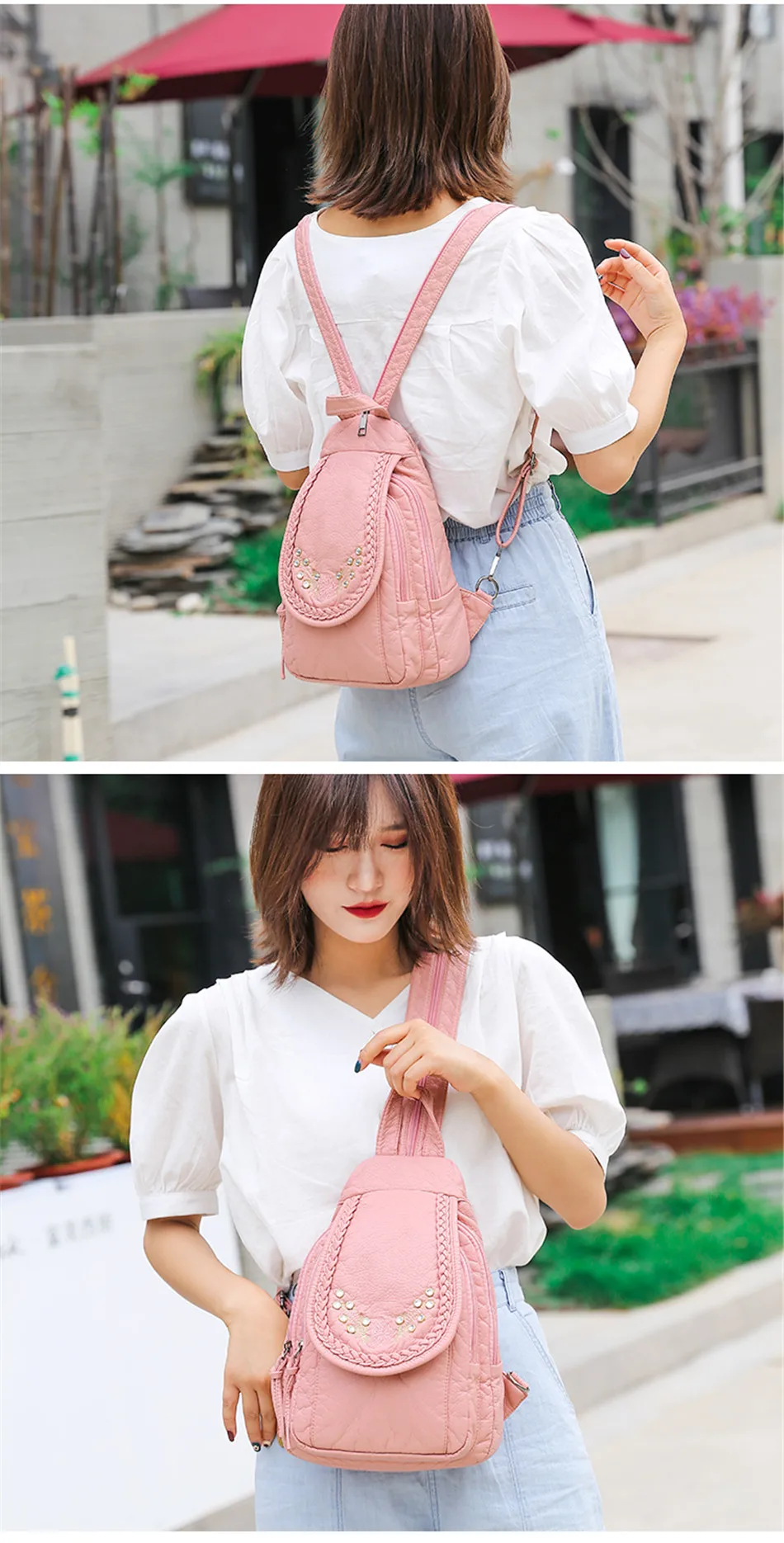 Новинка 2020, Модный женский рюкзак с вышивкой, кожаный женский рюк...