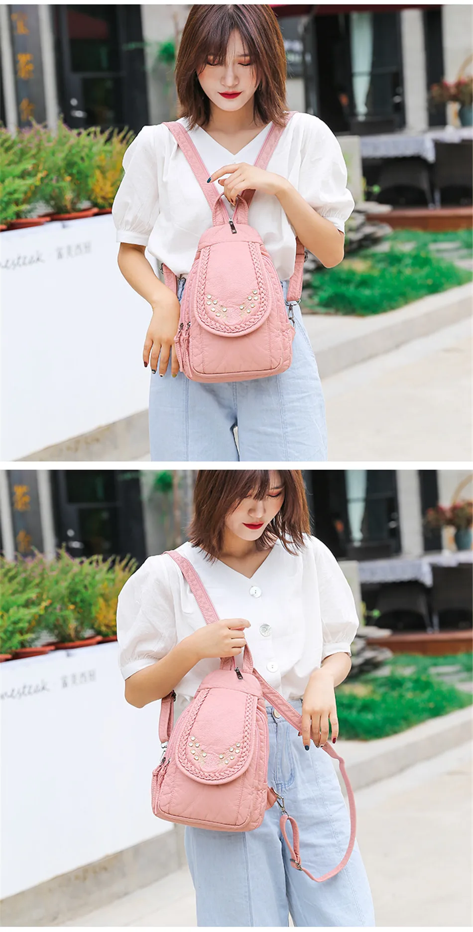 Женский рюкзак 3-в-1 из мягкой потертой кожи, маленький дорожный ранец с котом для девушек