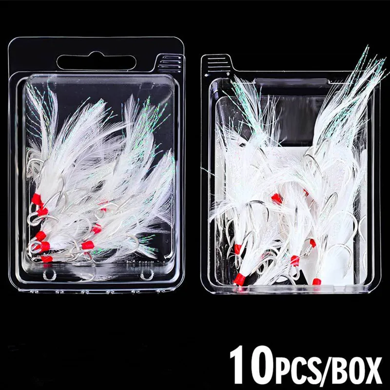 Тройные рыболовные крючки 10 шт. тройные Крючки с перьевыми снасти ...