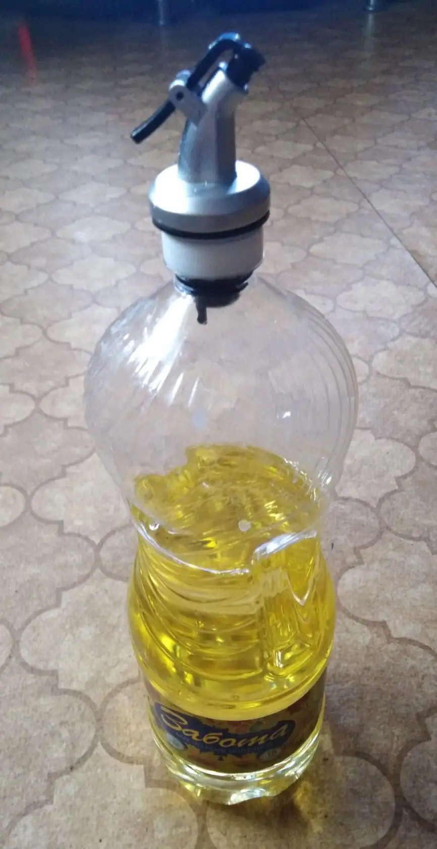 Хорошая удобная штука подошла к обычной бутылки масло, но немного подтекает, наверное все таки не плотно легла.Доставка до Мордовии месяц