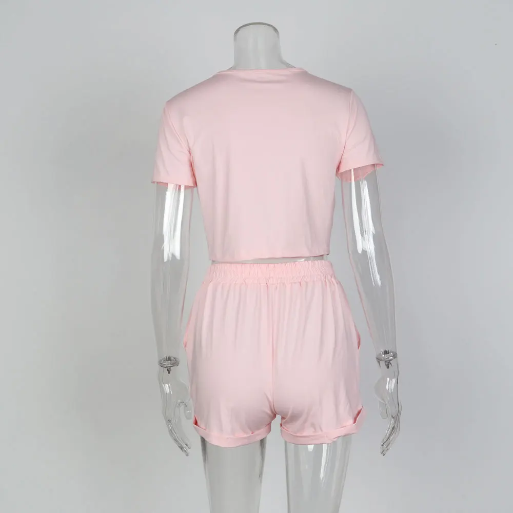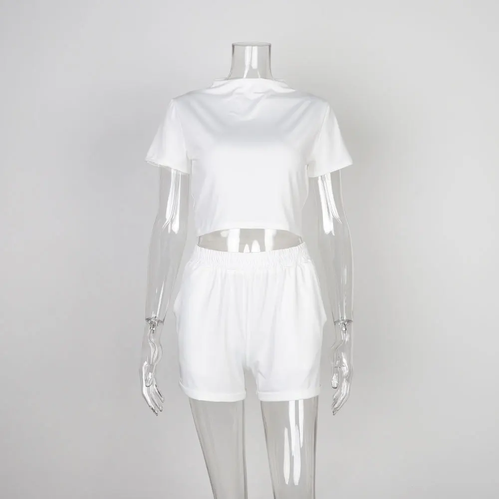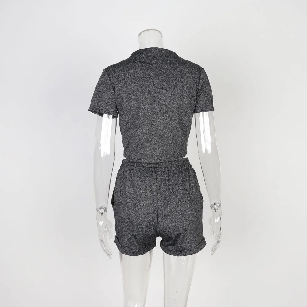 Женские спортивные костюмы, укороченные топы и шорты с воротником-стойкой, шорты с карманами, комплект из двух предметов, Лето Женский комплект 2 шт., размера плюс
