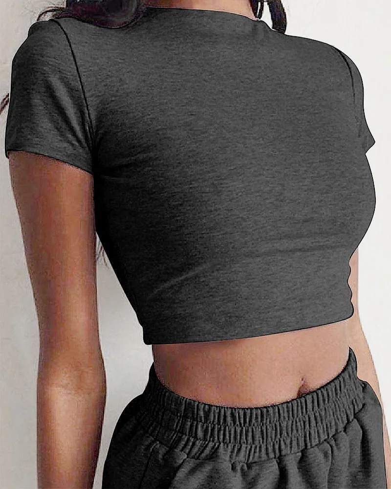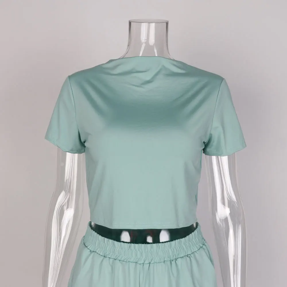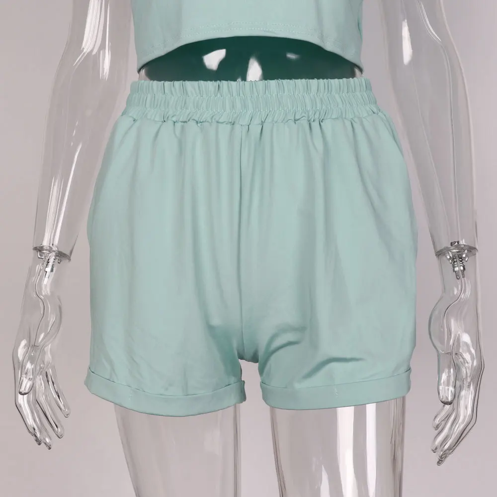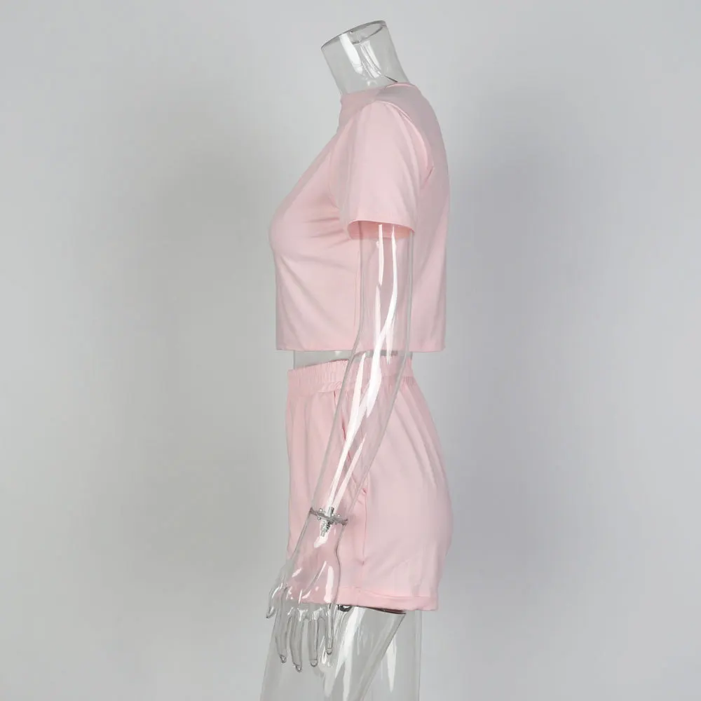 Женские спортивные костюмы, укороченные топы и шорты с воротником-стойкой, шорты с карманами, комплект из двух предметов, Лето Женский комплект 2 шт., размера плюс