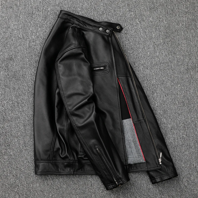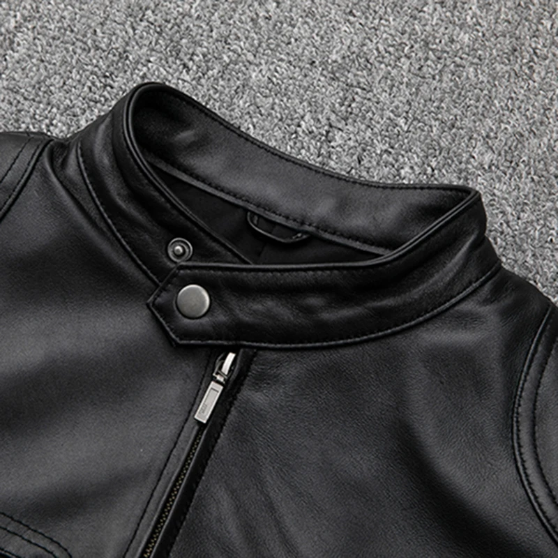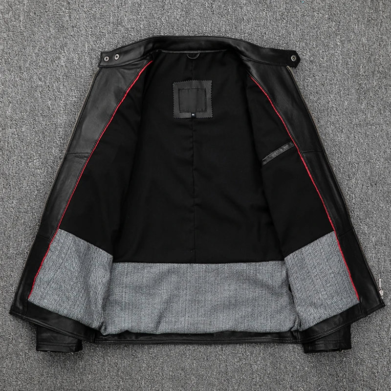 Куртка-Авиатор мужская из овечьей кожи, приталенная байкерская куртка-бомбер с длинным рукавом, на молнии, из натуральной кожи, на осень