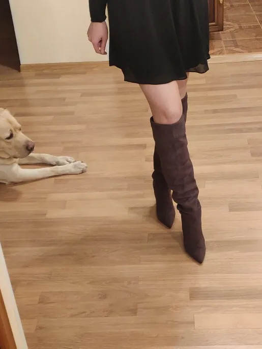 Высокое качество! Превосходная отделка, я рекомендую! Более быстрая доставка! Это действительно красивые сапоги. Каблук очень высокий.