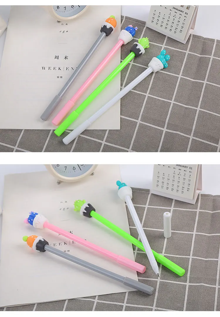 Ручки нейтральные с черными чернилами, гелевая ручка с кактусами мм...