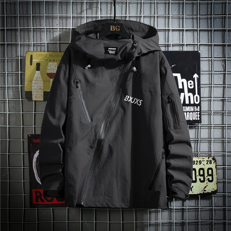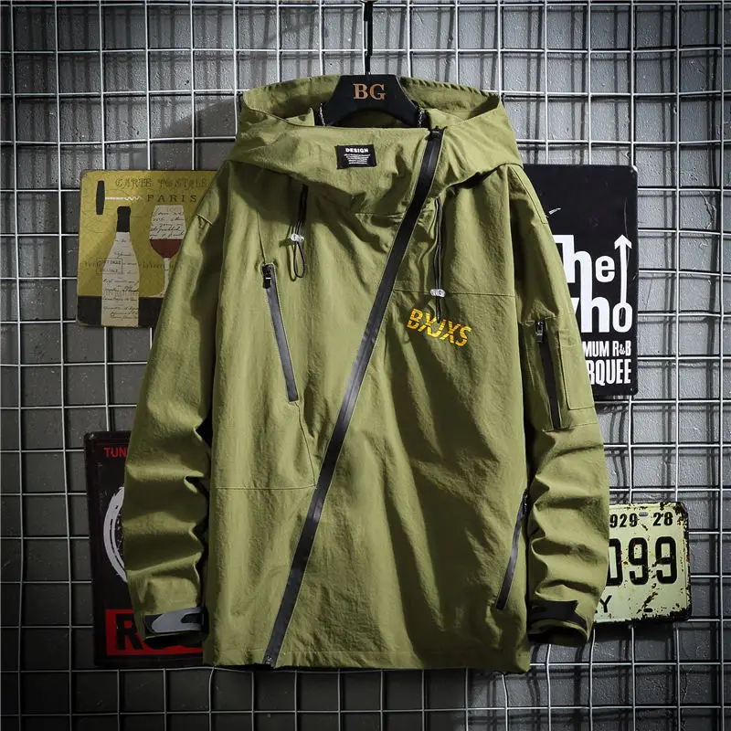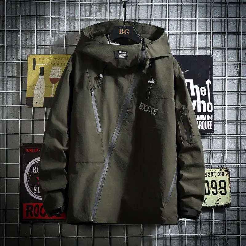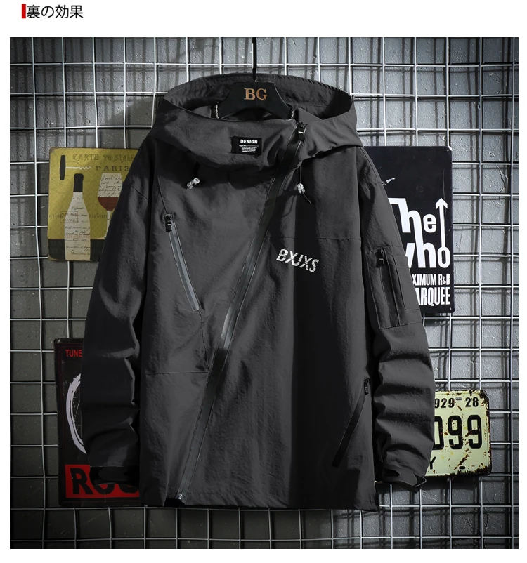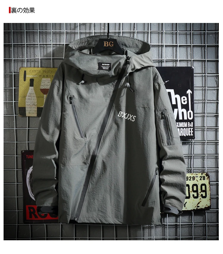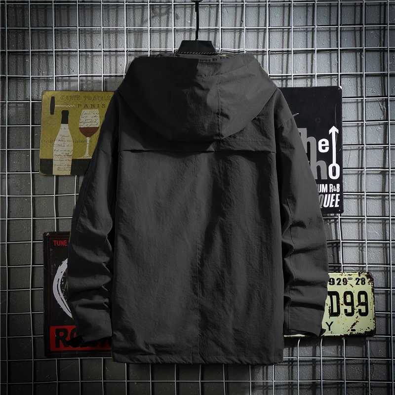 Ветровка мужская в стиле ретро, куртка с капюшоном, Японская уличная одежда, однотонная размера плюс, куртка в стиле оверсайз, пальто на молнии, осень 5XL