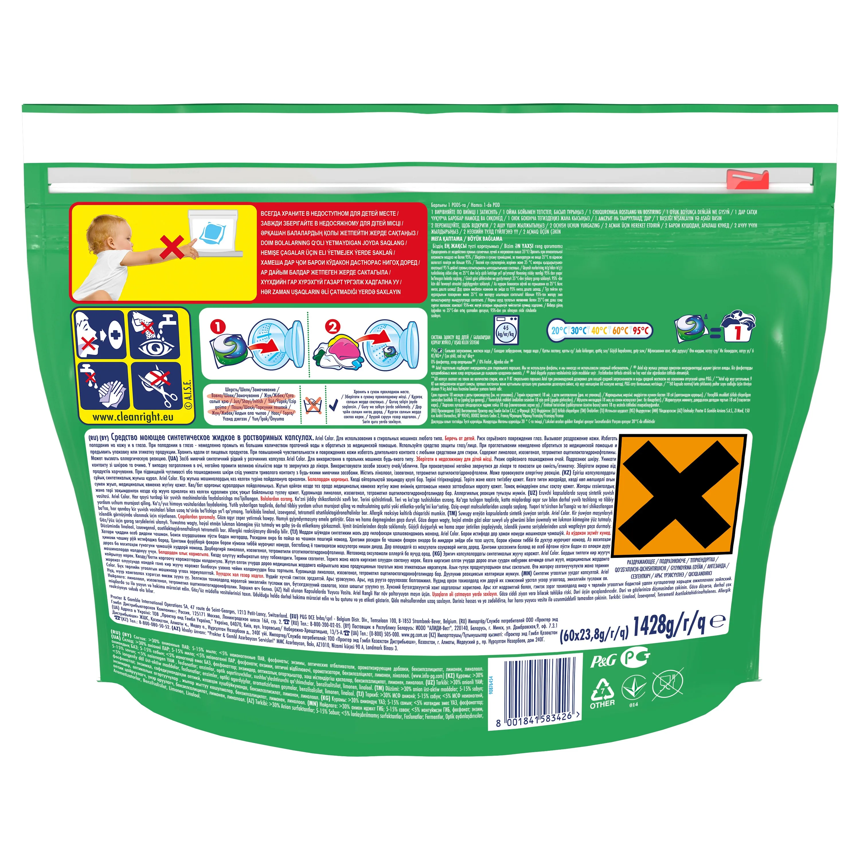 Этот продукт может быть опасен и может нанести серьезные травмы. Храните капсулы Ariel Pods в недоступном для детей месте. Чтобы узнать больше, посетите веб-сайт www.ariel-russia.ru/ru-ru