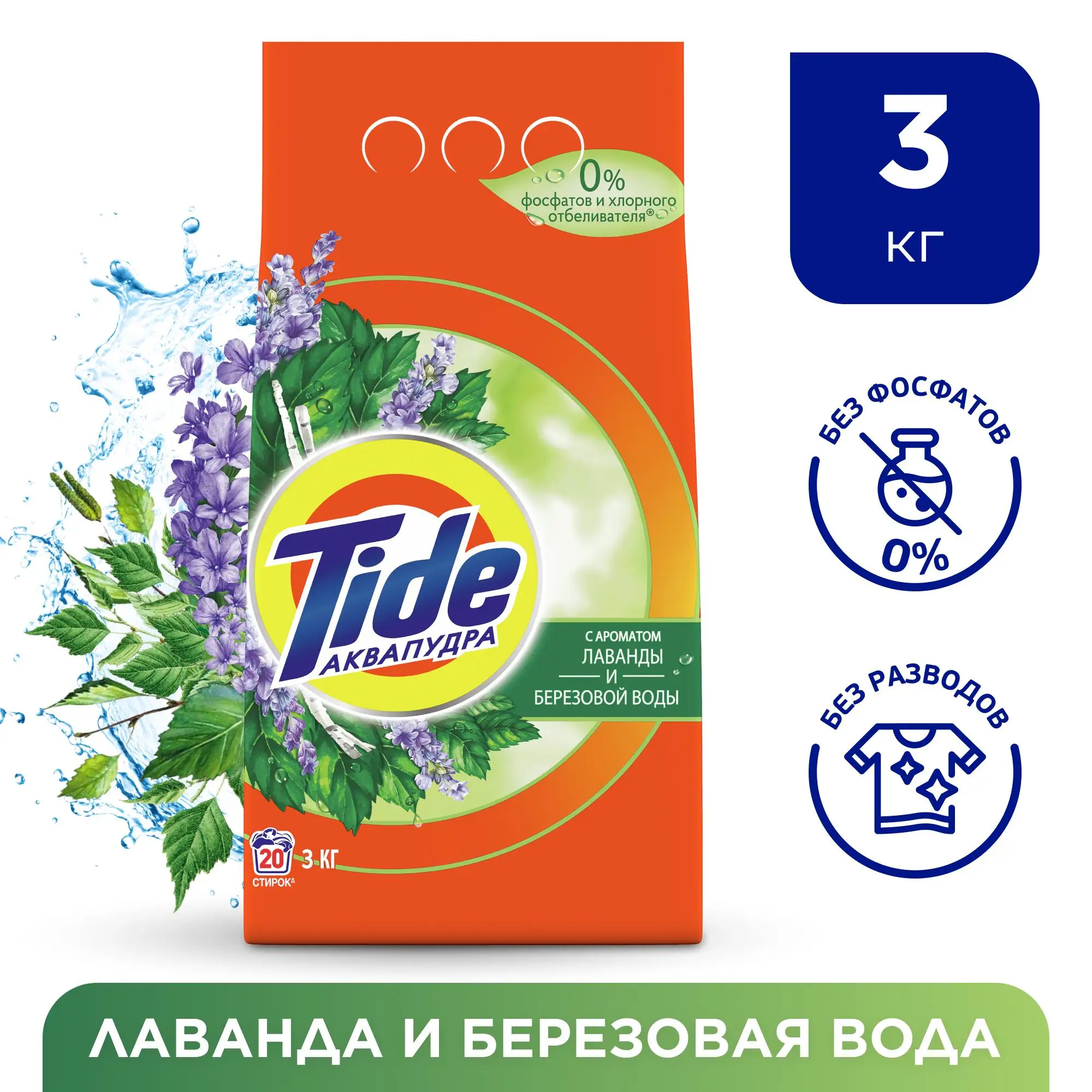 Стиральный Порошок Tide Лаванда И Березовая Вода сочетает в себе безупречное очищение от Tide с мягким ароматом, навеянным природой России. Tide тщательно подбирает ингредиенты для своих средств.
