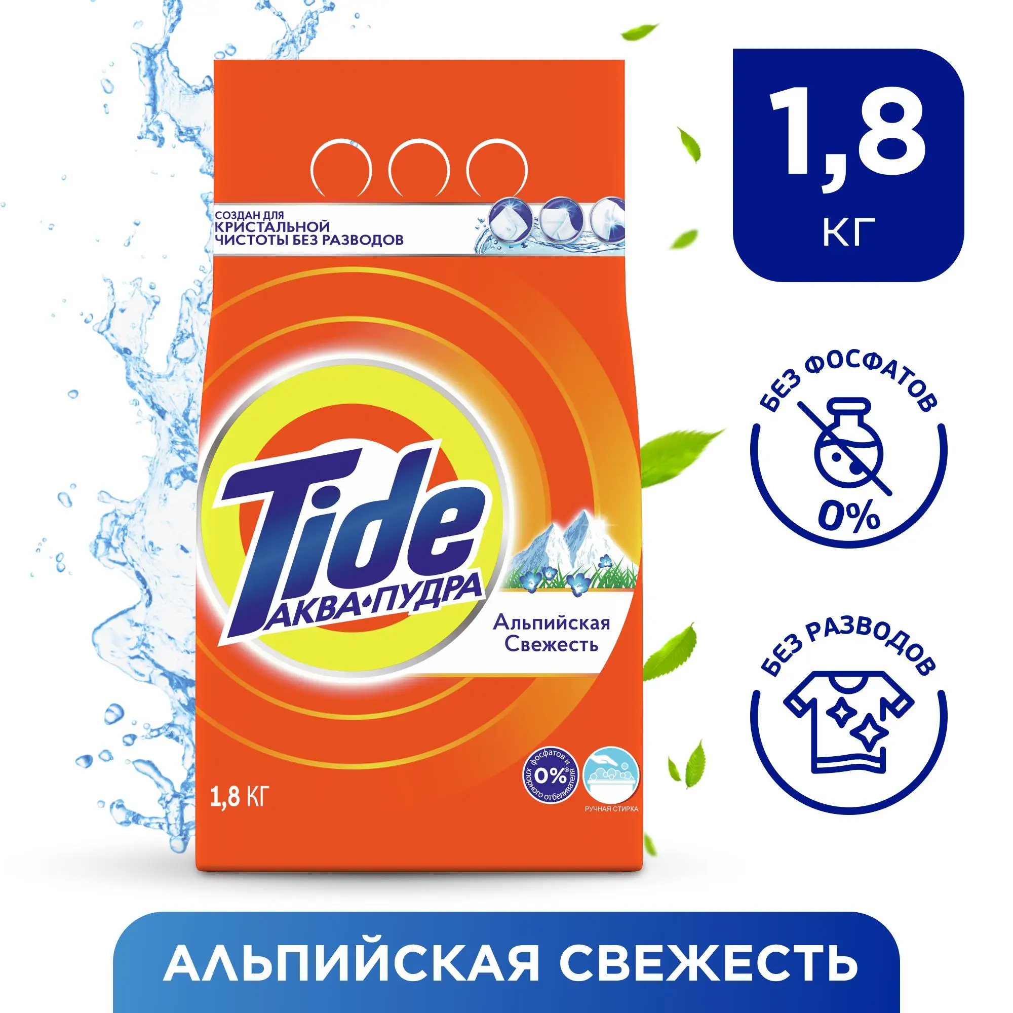 Стиральный порошок Tide Альпийская свежесть отлично отстирывает одежду всей семьи. Это не только высокоэффективное, но и экономически выгодное средство, ведь одна доза Tide позволяет добиться большей белизны, чем две дозы обычного средства для стирки. Доверьте Tide стирку одежды вашей семьи, и вы будете выглядеть превосходно. Не тратьте драгоценное время на стирку Tide с легкостью сделает все за вас. Вдобавок Tide придаст вашей одежде легкий и приятный аромат.