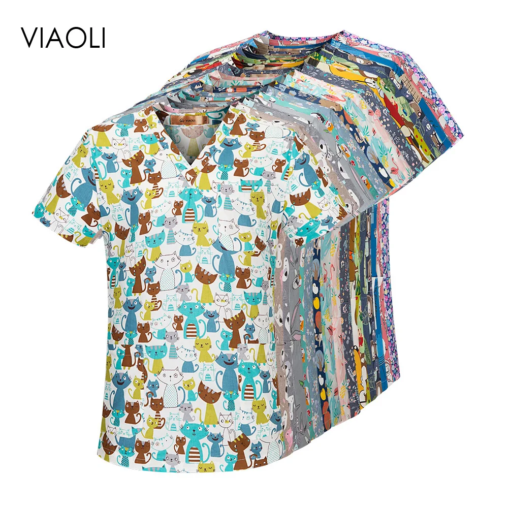 Хирургические Топы Униформа женская, с коротким рукавом, с принтом