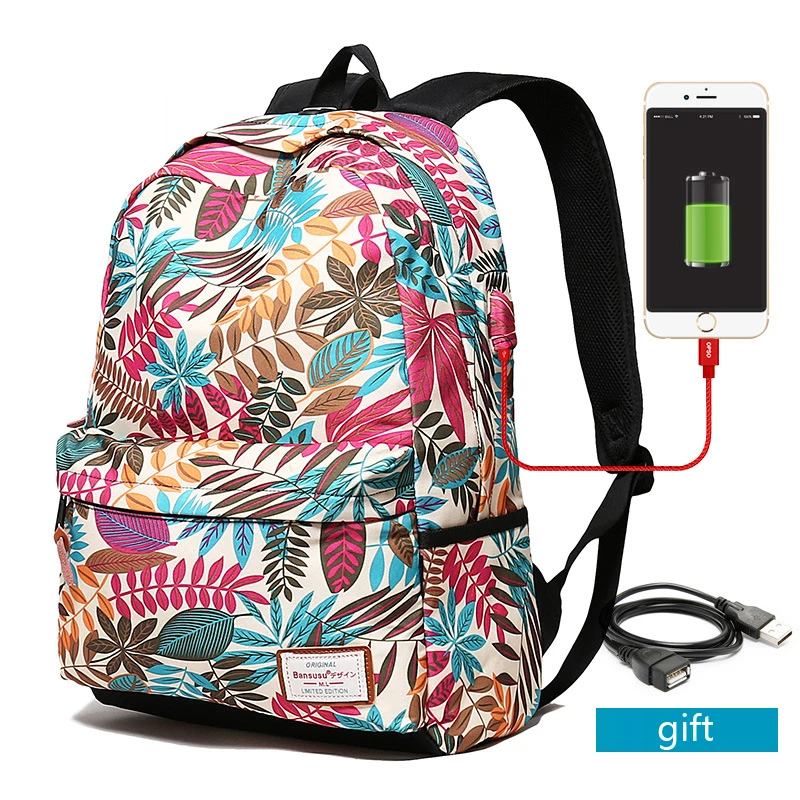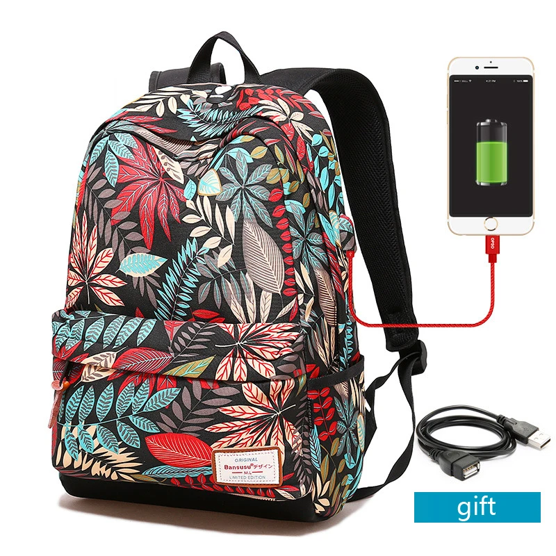 Школьный рюкзак для девочек, школьные сумки для женщин с usb-зарядкой, рюкзак для ноутбука с принтом для подростков, женские рюкзаки для студентов колледжа