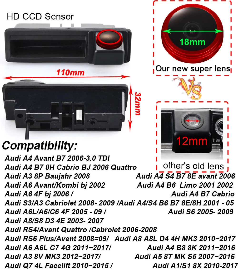 Камера заднего вида для Audi A6L Q7, A3, A4, A6, A8, A5, S4, S6, S3...