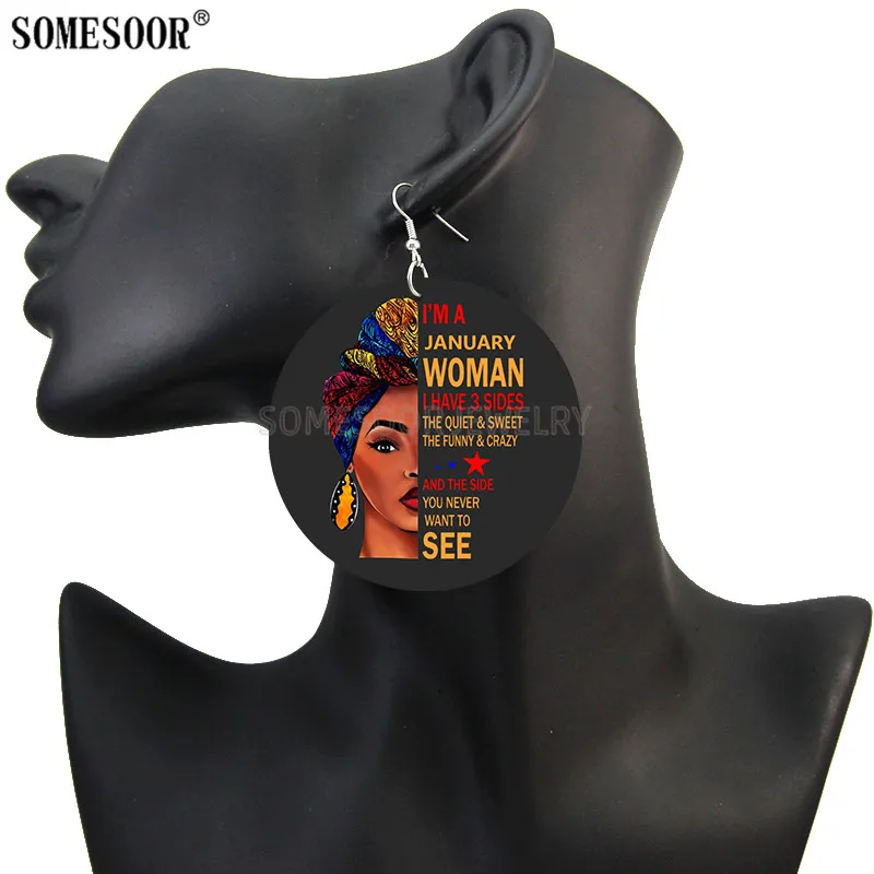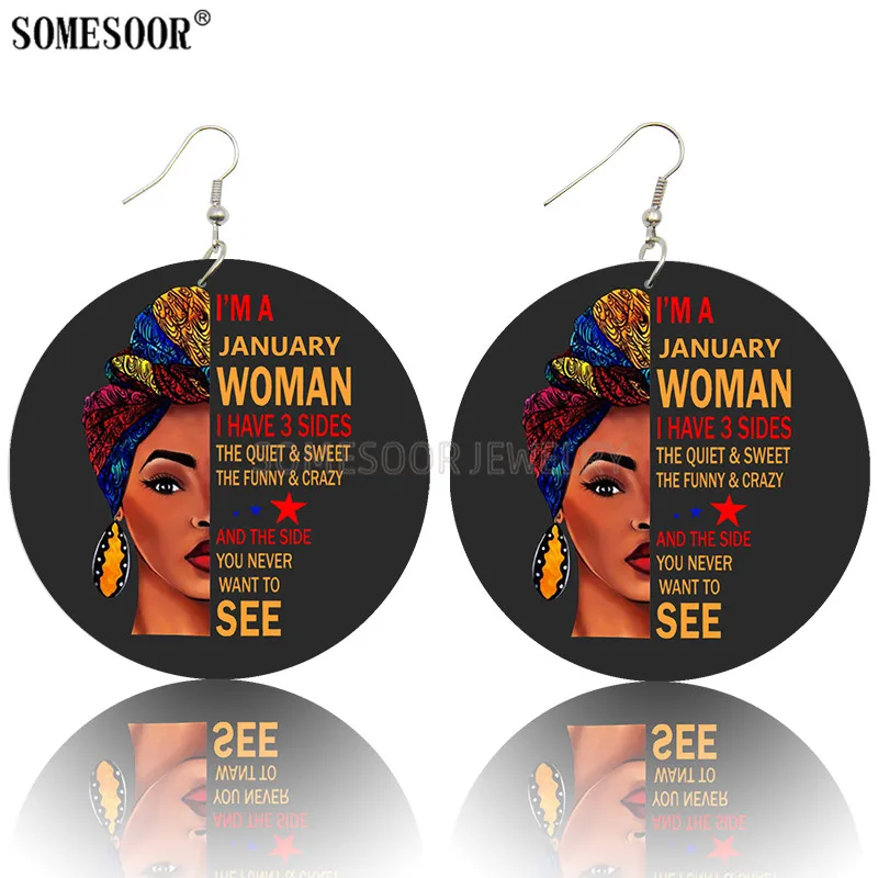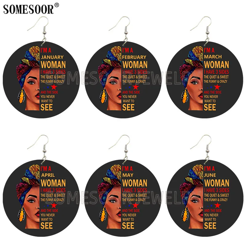 Ювелирные изделия SOMESOOR 12 месяцев на обеих дизайнах, деревянные круглые Висячие африканские серьги для черных женщин, подарки