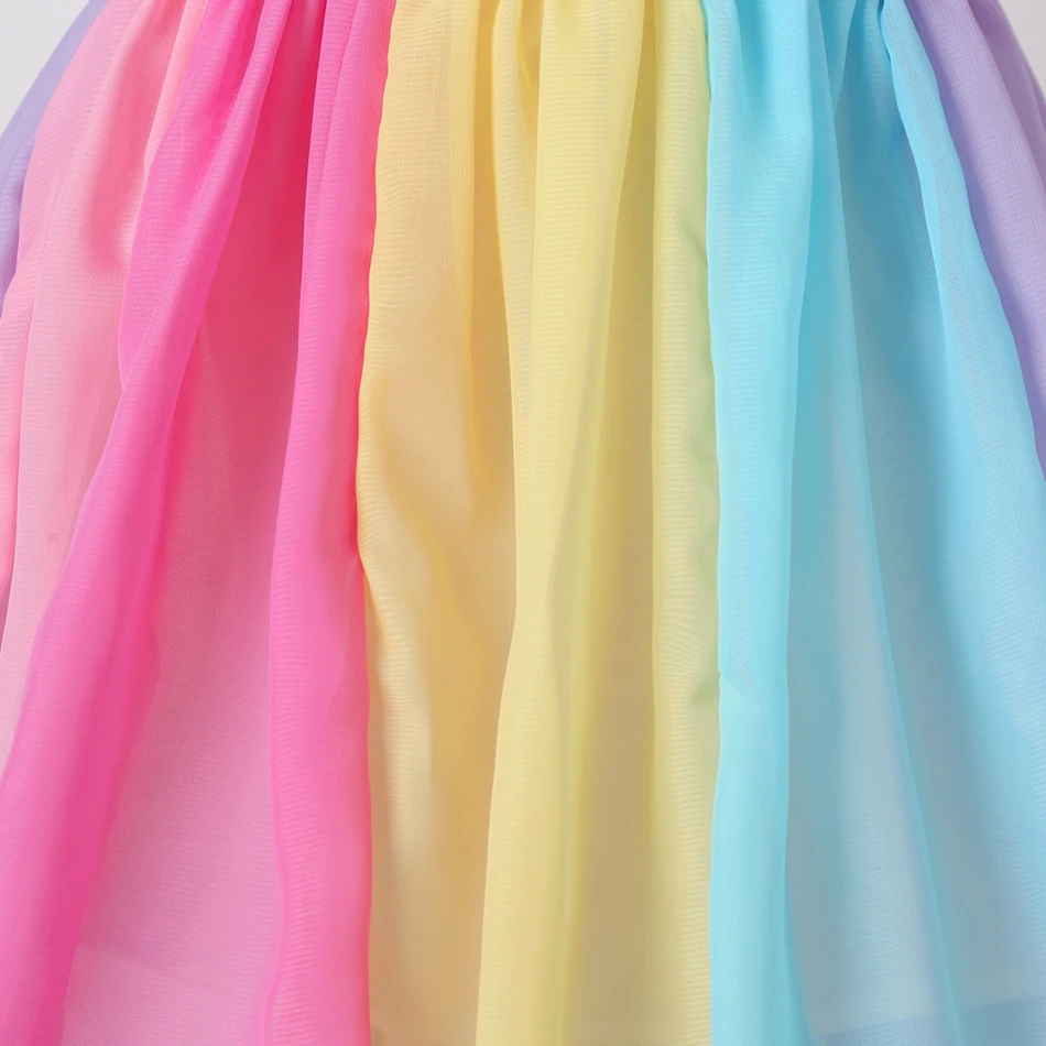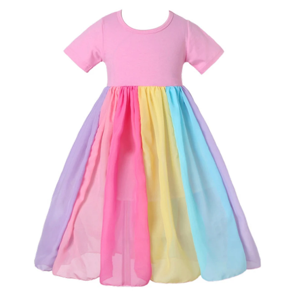 От 1 до 8 лет Радужное платье для девочек Детская летняя яркая расклешенная одежда розового цвета для дня рождения, детские платья