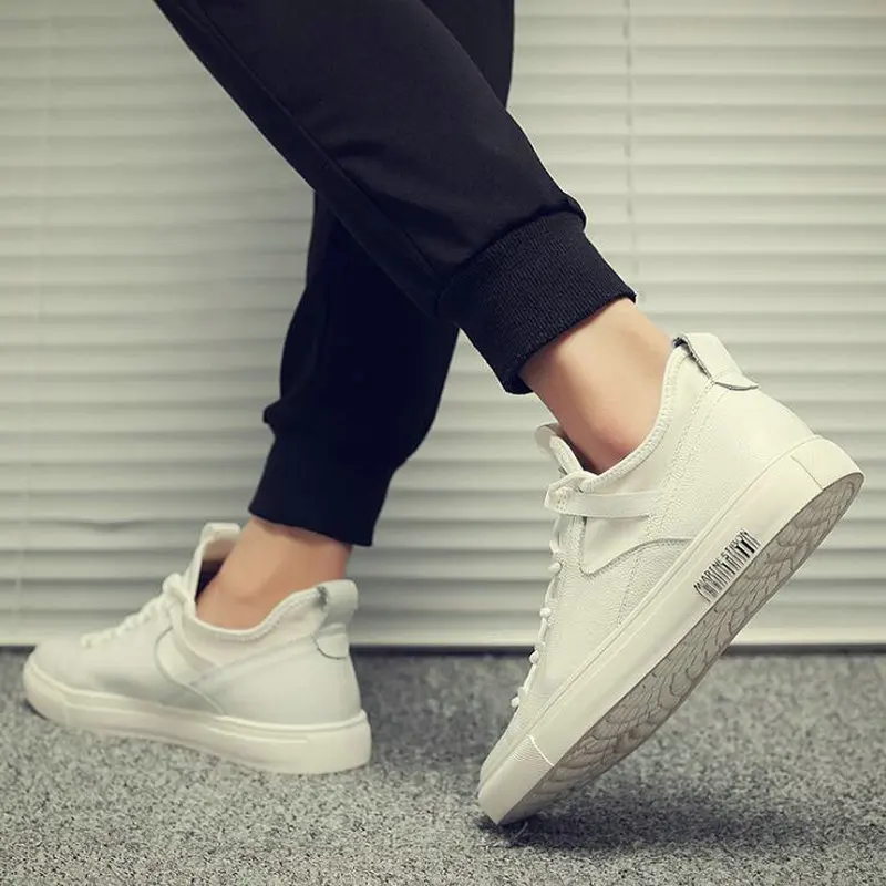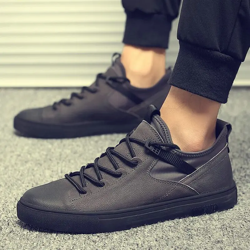 Мужские кожаные кроссовки, Повседневная модная обувь на плоской подошве, черные и белые, 569
