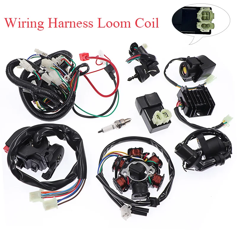 Полный Электрический жгут проводов, ткацкий станок, катушка для GY6 CDI 125CC 150CC ATV Quad Buggy Go Kart с выключателем зажигания, выпрямитель, соленоид