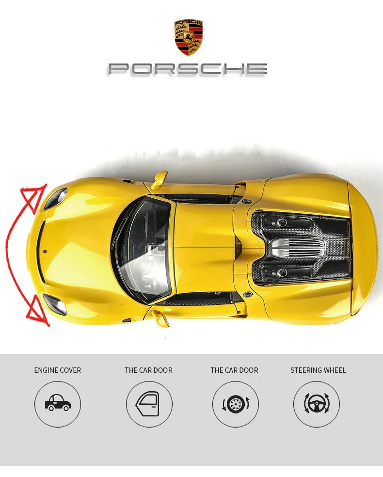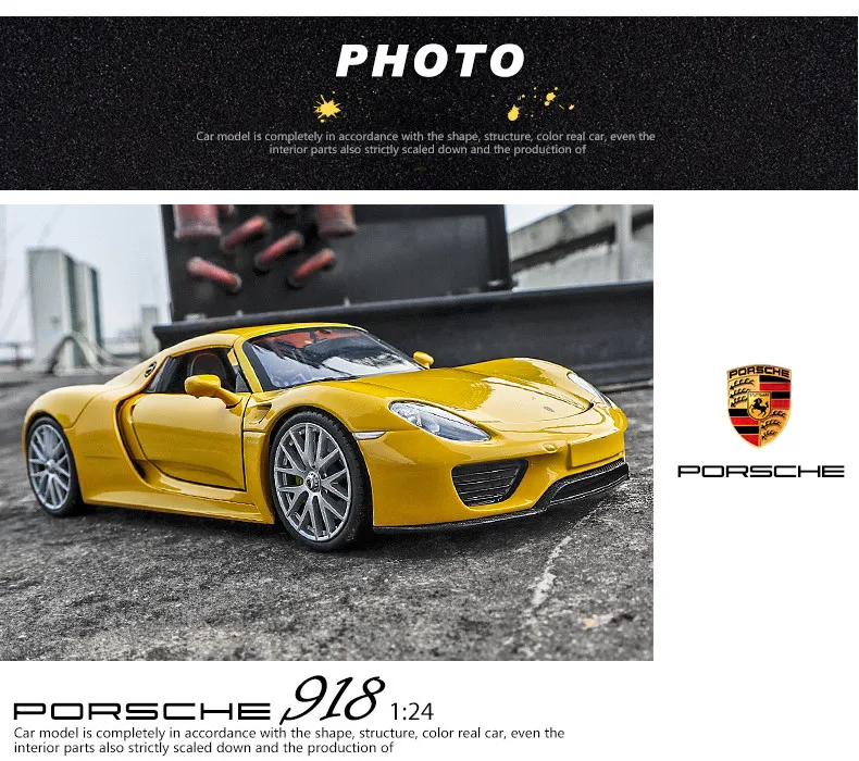 Модель автомобиля из сплава в масштабе 1:24, Порше 918, модель авто...