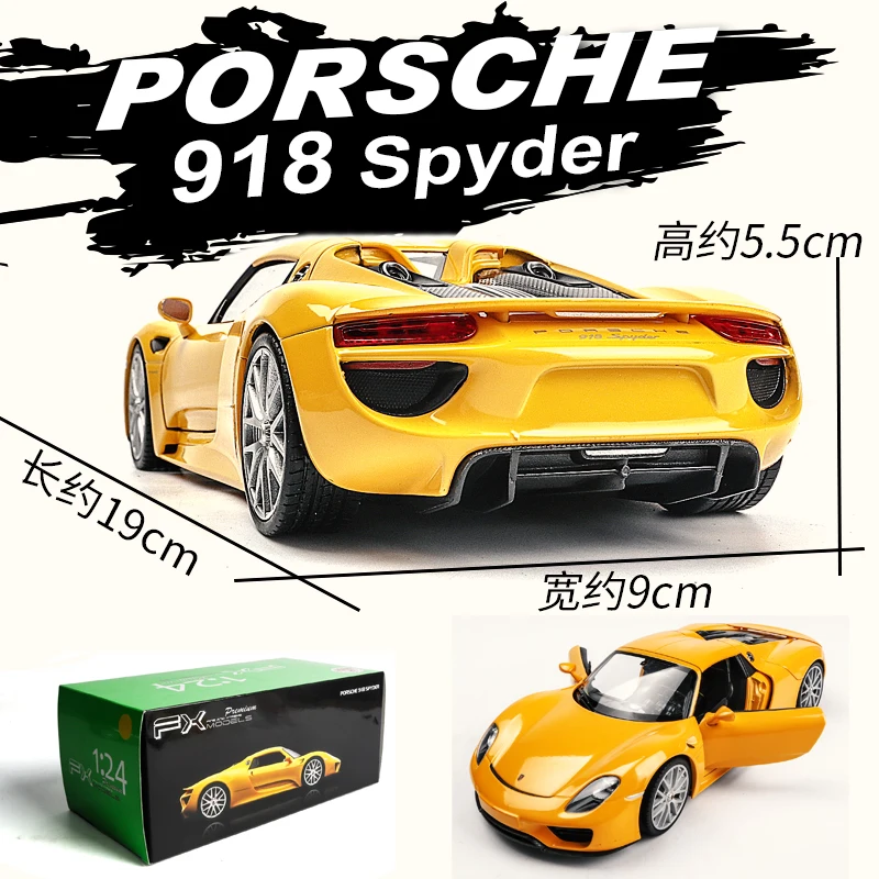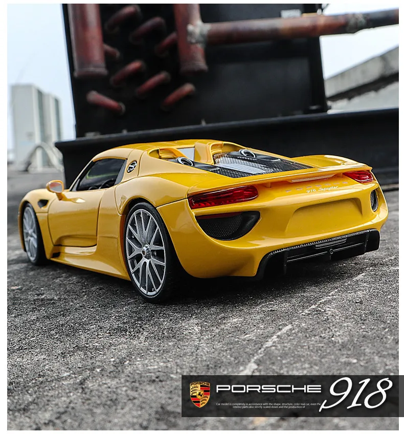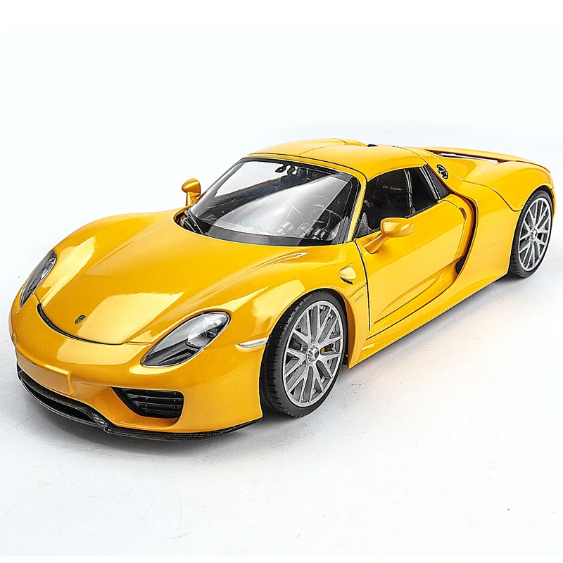 Желтая модель спортивного автомобиля WELLY 1:24 Porsche 918 Spyder из сплава, модель автомобиля, украшение, коллекция игрушек, инструменты, подарок