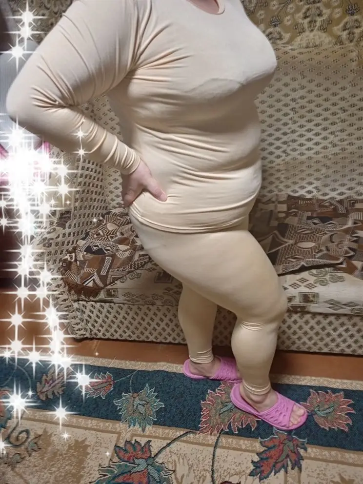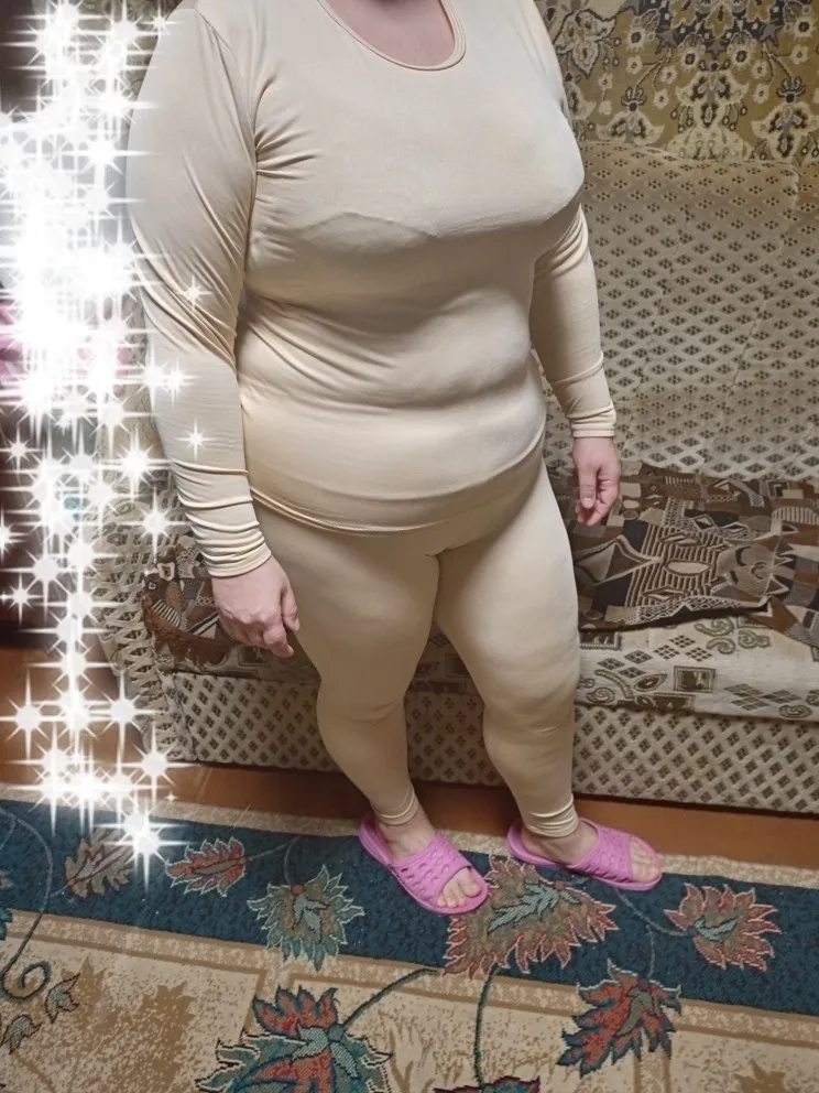Термобелье заказал жене. Ей все подошло 5XL на 56 размер. Насколько тёплое, ещё не испытали. Трикотаж - синтетика, но очень приятный на ощупь. Снаружи, как плотные шелковистые колготки, внутри ворсистый. Тянется хорошо. Сшито качественно, без перекосов и торчащих ниток. Такую поддёву для холодов всем дамам рекомендую. Продавцу спасибо!