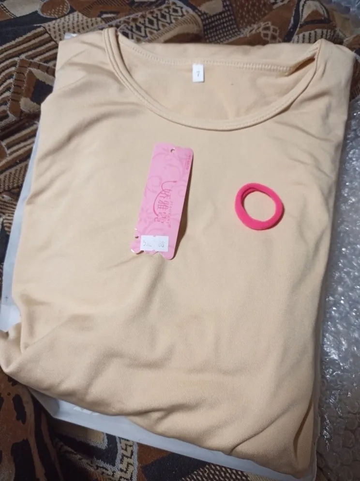 Наконец, то костюм пришёл. Брала самый большой размер. Ношу российский размер 54-56. Боялась, что будет мал, но оказался впору, что радует. В пакет была выложена резинка для волос. Спасибо продавцу.