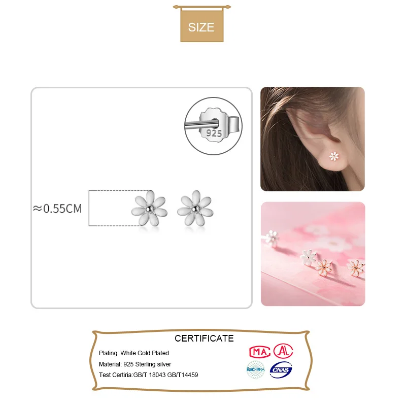 Женские серьги-гвоздики с белым цветком Trustdavis, сережки из настоящего серебра 925 пробы для свадьбы, дня рождения, DA1520