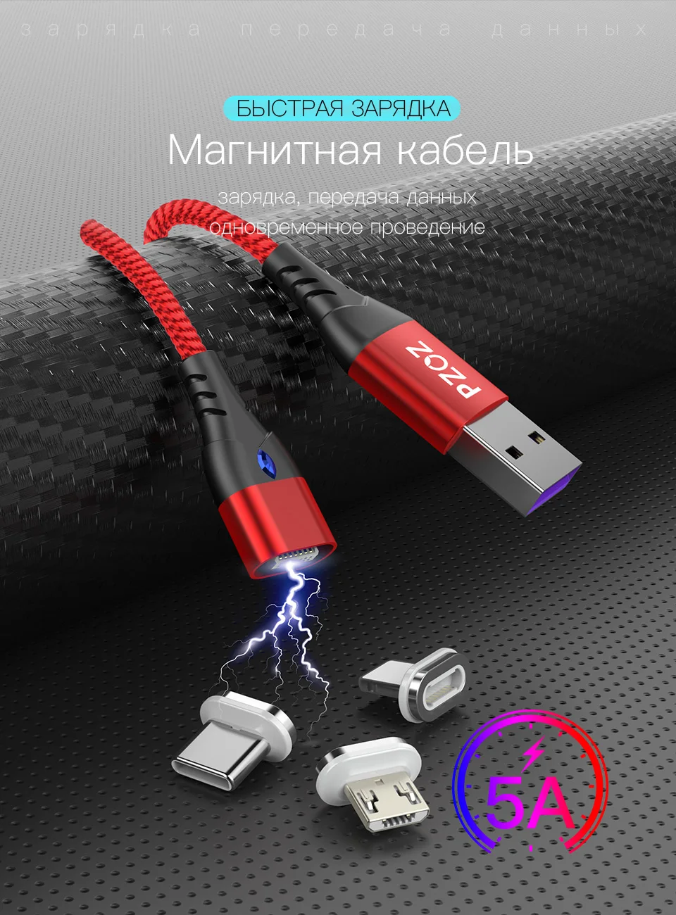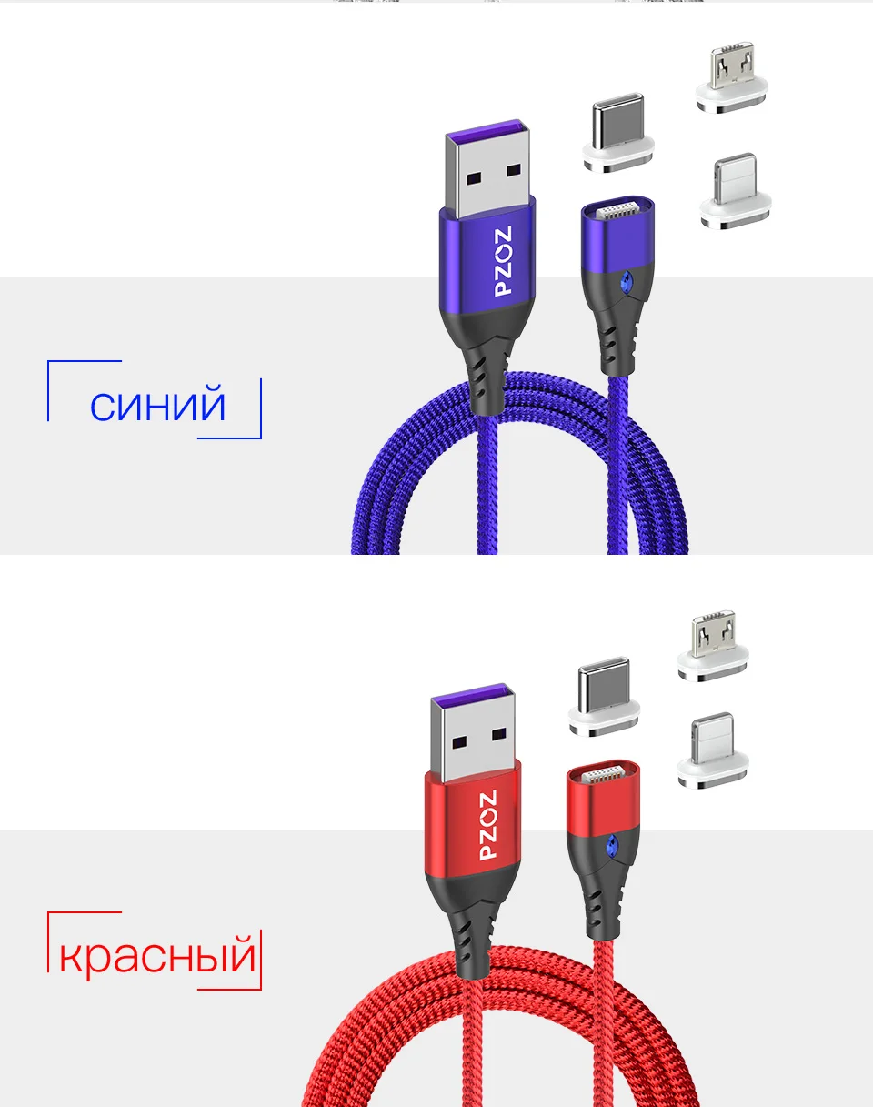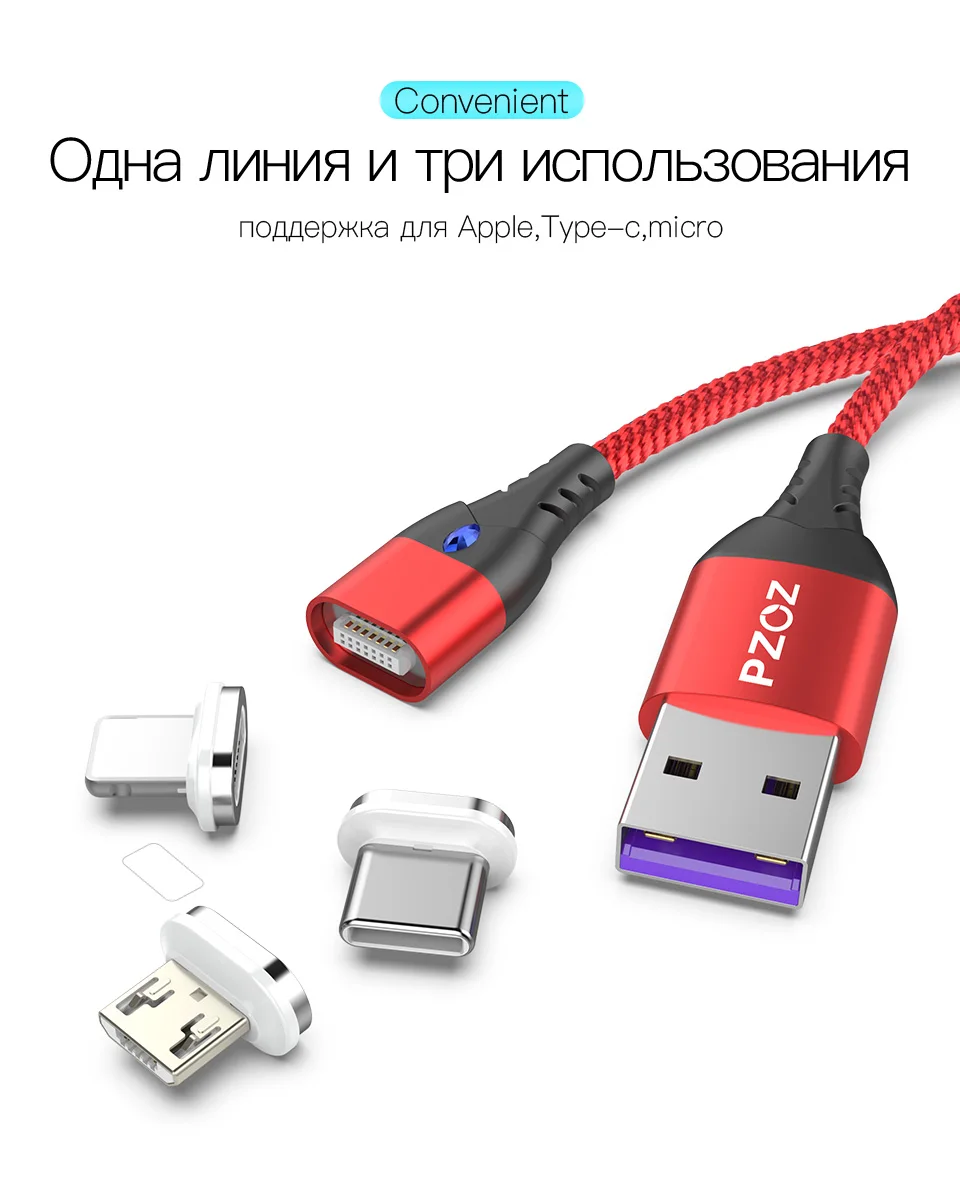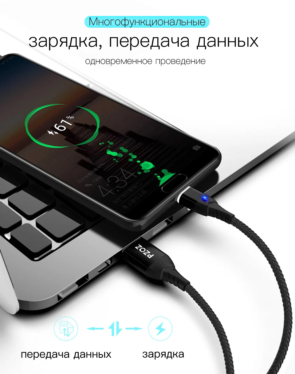Магнитный кабель PZOZ usb-c, micro usb, для iphone 11 max, xr, redmi note 9s градусов, 5 А