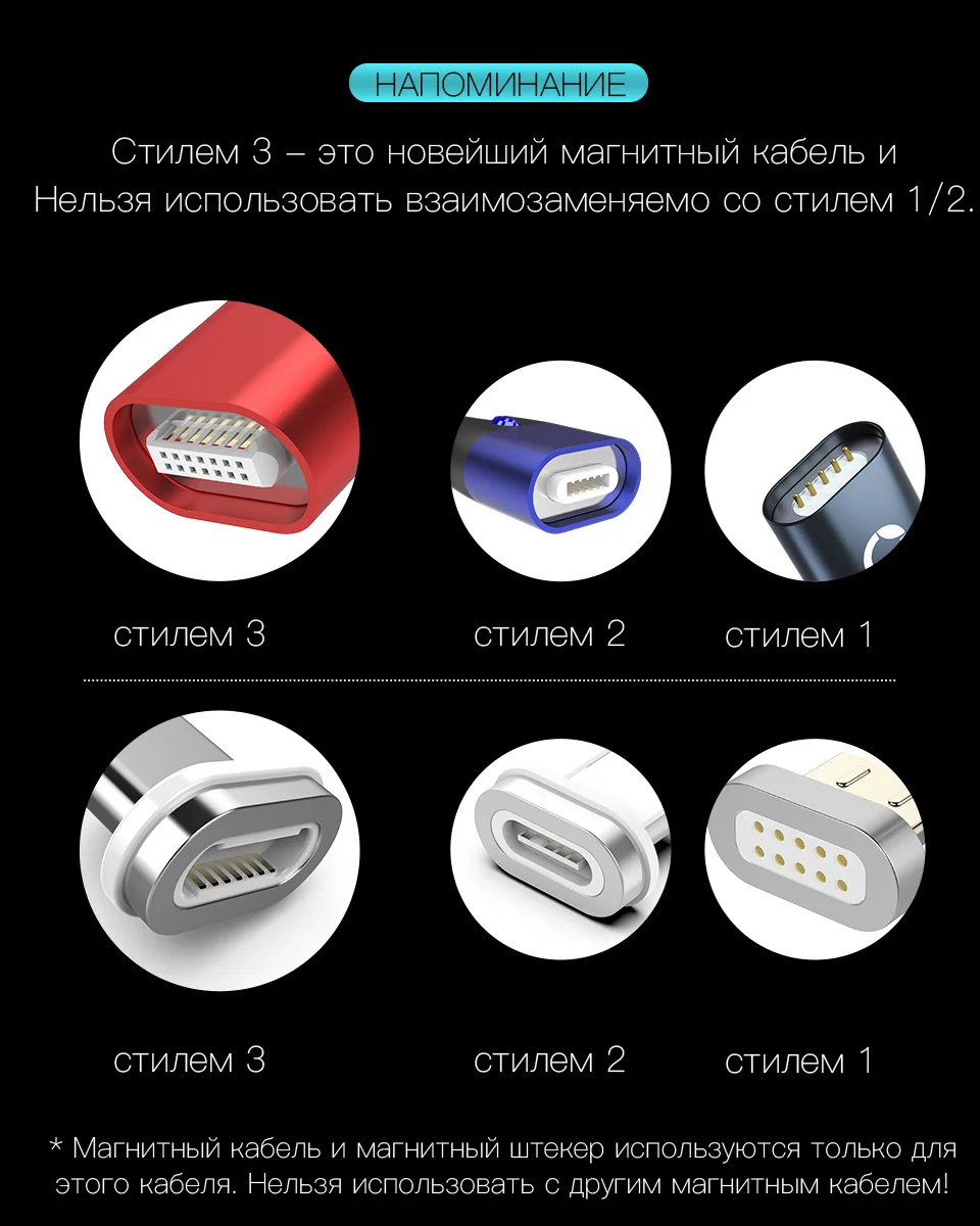 Кабель очень понравился. Категорически рекомендую! Новый тип кабеля. Несовместимый с другими типами. Чисто на выпуклый "анженерский" глаз должен проводить больший ток и быть надежнее, чем предыдущие типы. По сути это уже начало вырождения идеи кабеля в переходник с type C на type C, предназначенный для предохранения мобильного устройства от влаги и от износа соединителя и универсальный кабель для всех устройств. Главное в эксплуатации такого кабеля не помять контакты на кабеле к которым присоединяется магнитный наконечник. И не допускать засорения выемок в наконечниках (да и в самих тип С соединителях). Короче Ружья кирпичом не чистить!