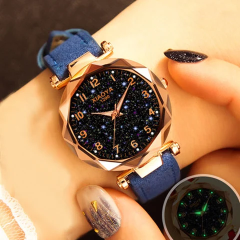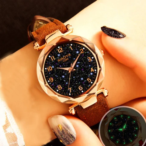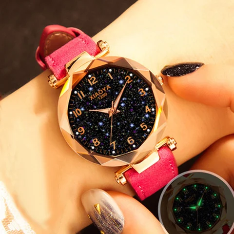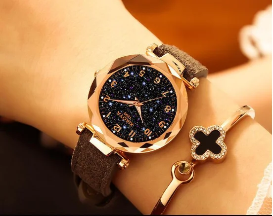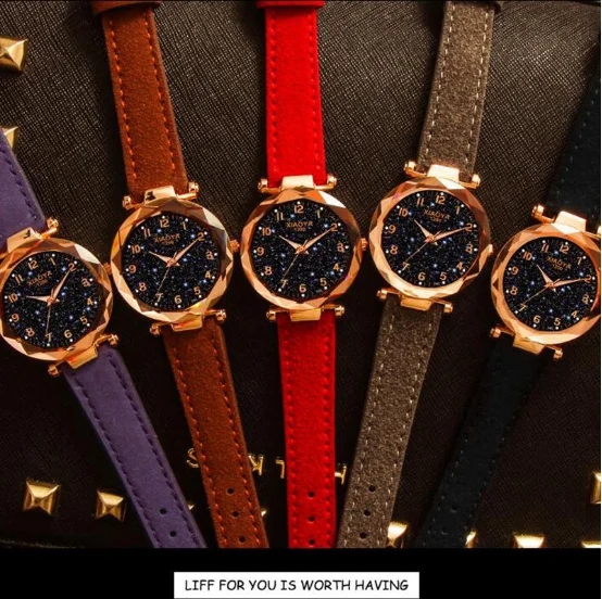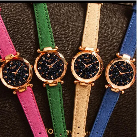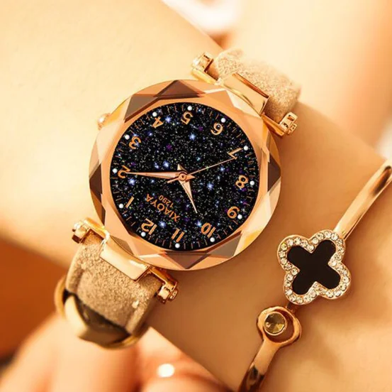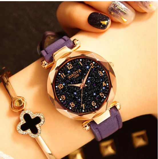 Женские кварцевые часы с кожаным ремешком, с принтом звездного неба