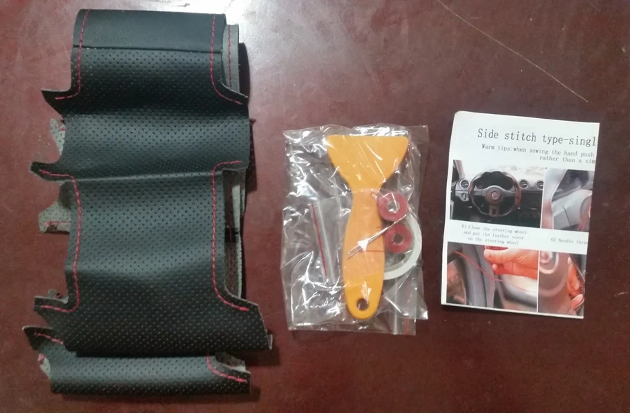 Чехол рулевого колеса автомобиля черная искусственная кожа красный ...