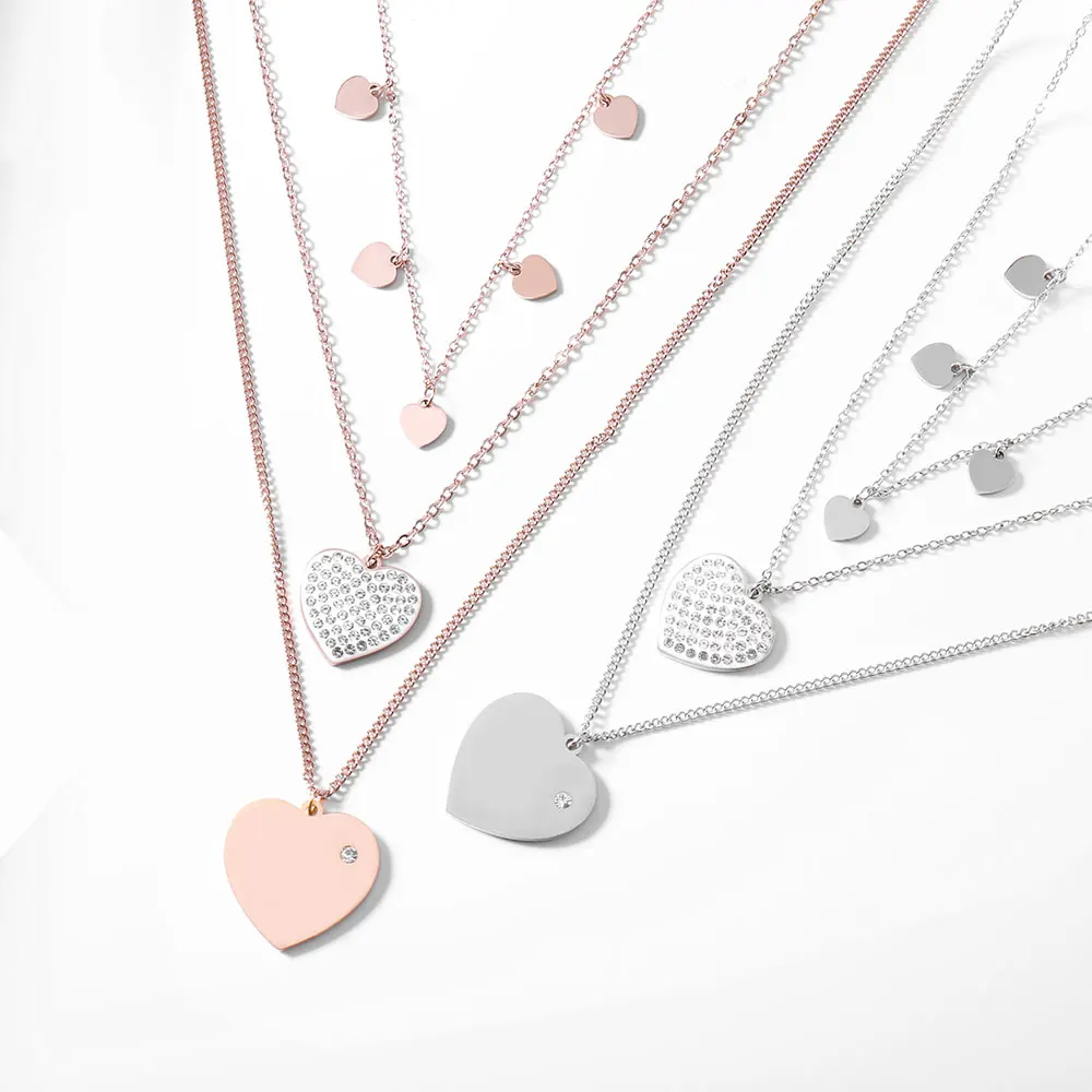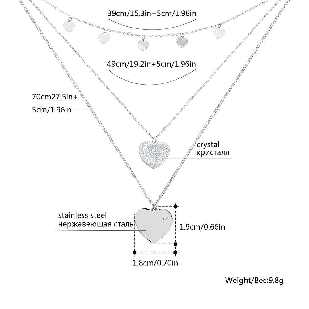 Короткая длина цепочки 49 см + 5 см Удлиненная цепь Длина длинной цепочки 70 см + 5 см Размер подвески в виде сердца: 1,8 см Материал подвески-нержавеющая сталь, стразы