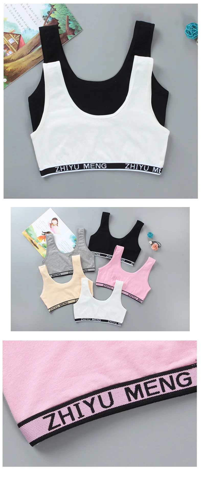 5 шт./лот, спортивные бюстгальтеры для девочек-подростков, бюстгальтер для девочек, нижнее белье, однотонное хлопковое нижнее белье с буквенным принтом для детей, Детский бюстгальтер