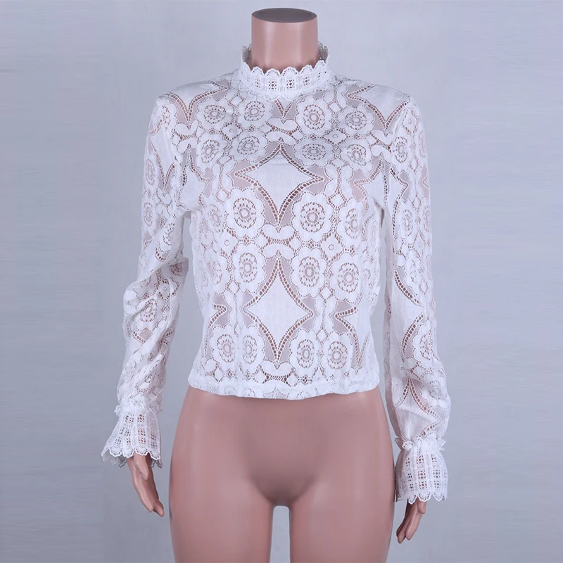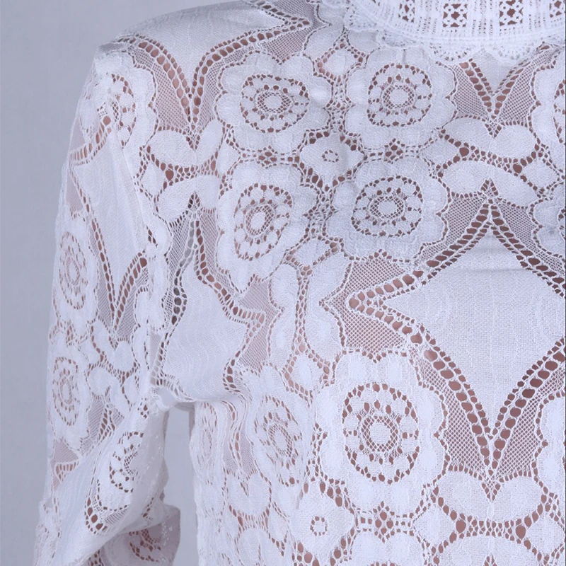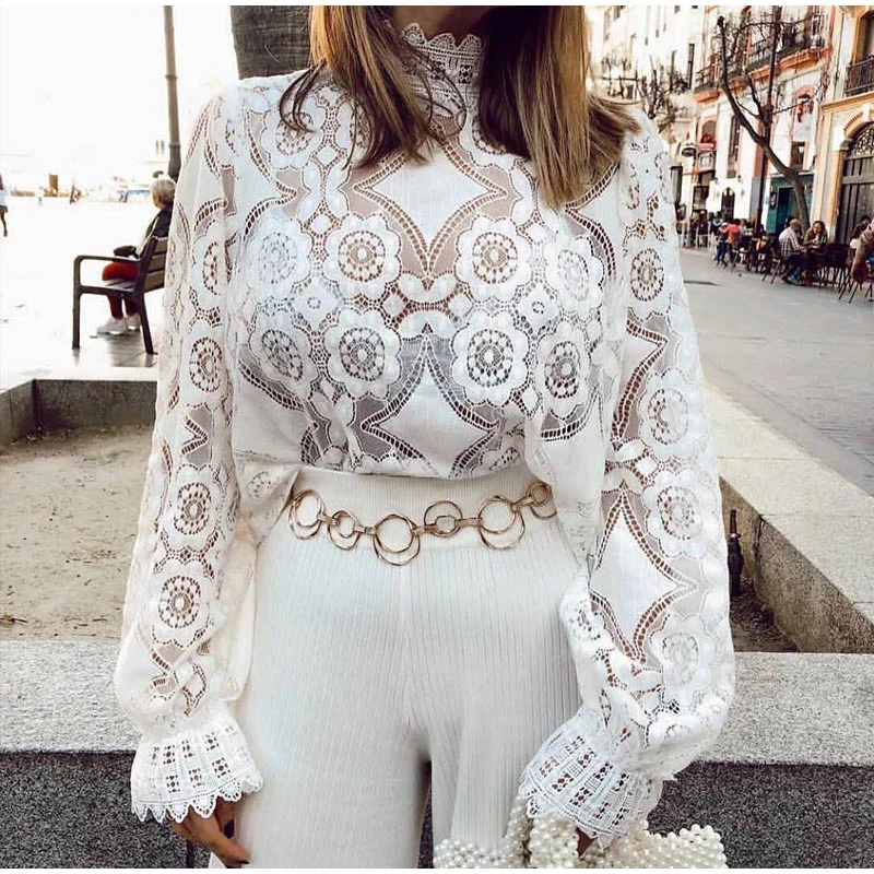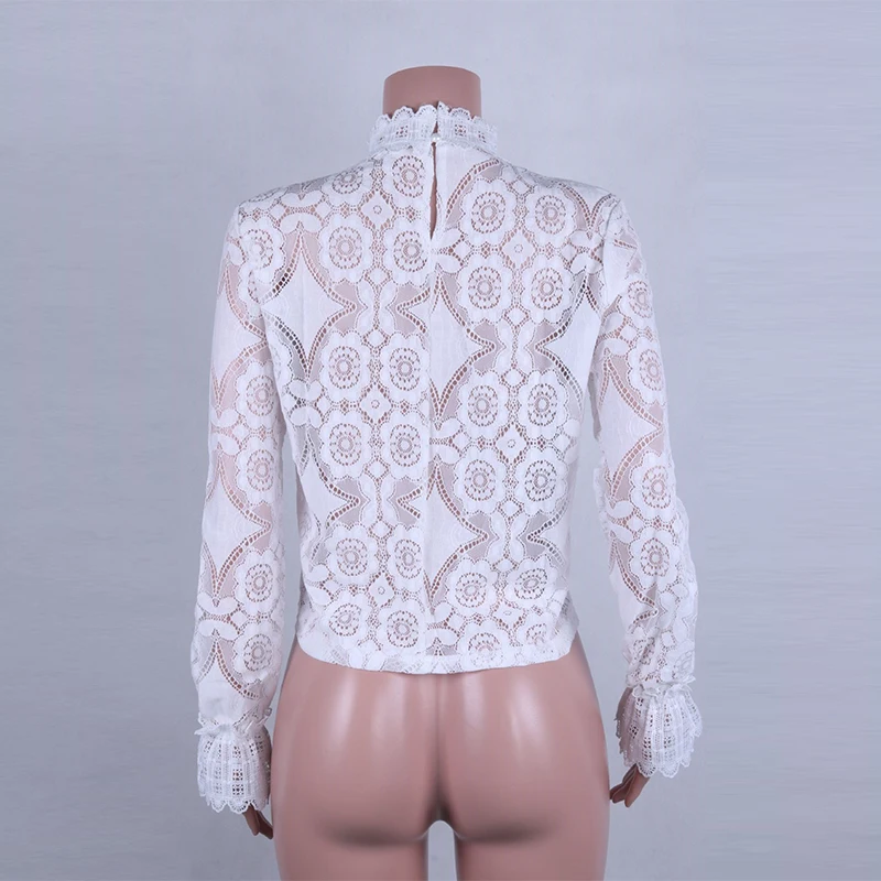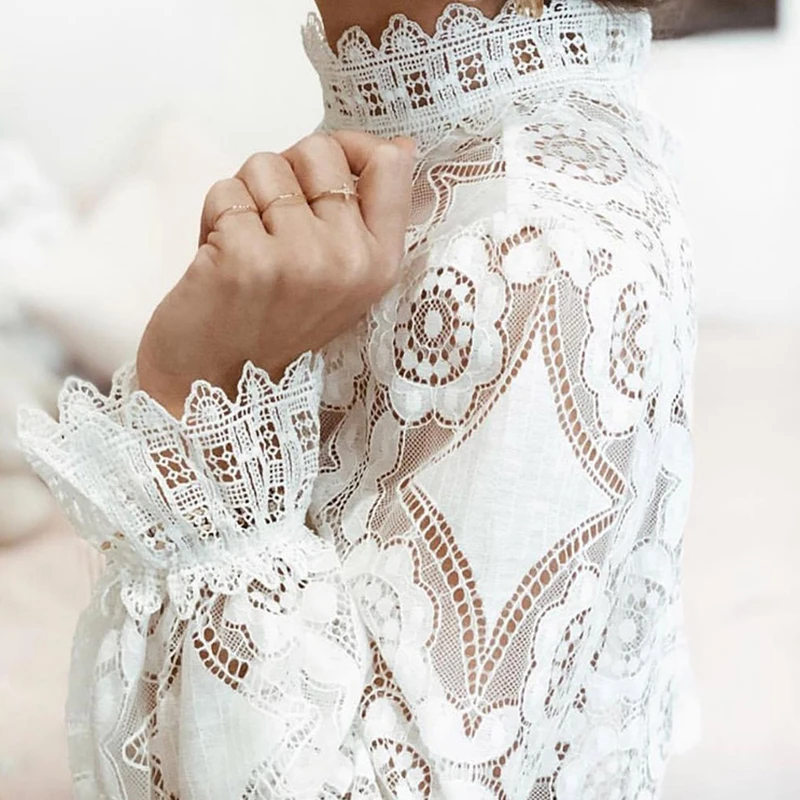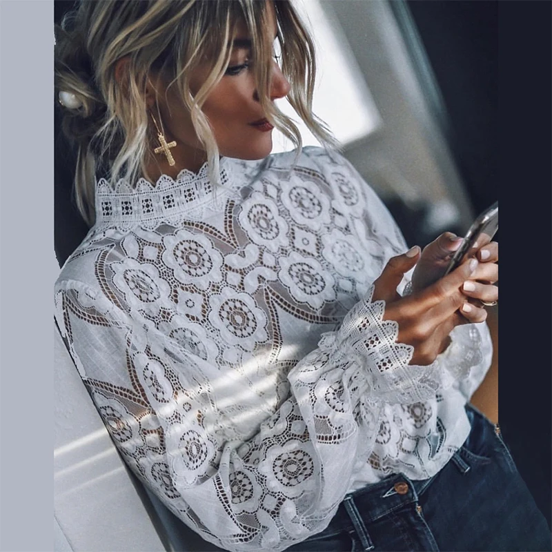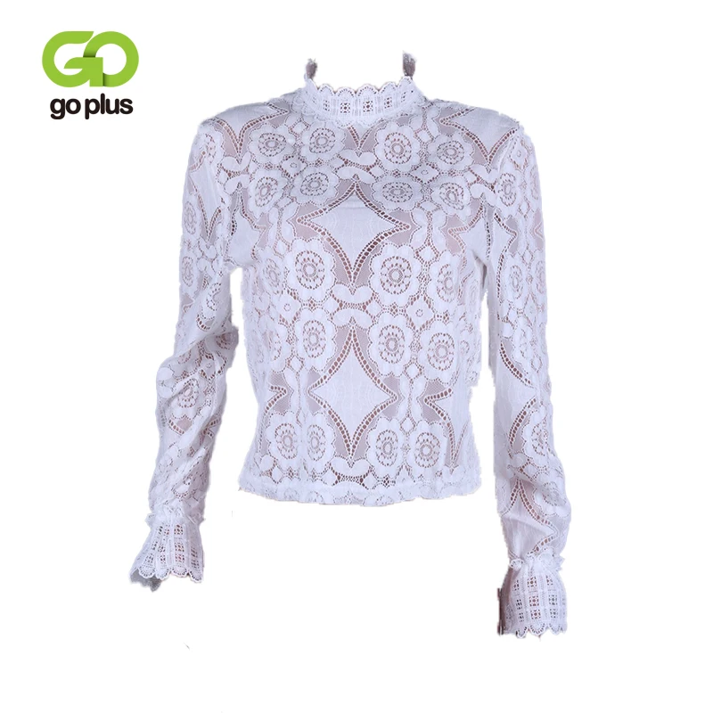 GOPlUS Женская Осенняя рубашка белая кружевная крючком Прозрачная женская блузка сексуальная модная с длинным рукавом 2020 Высокое качество топы
