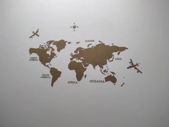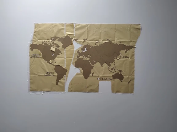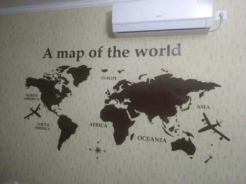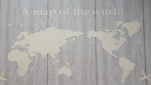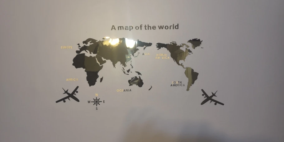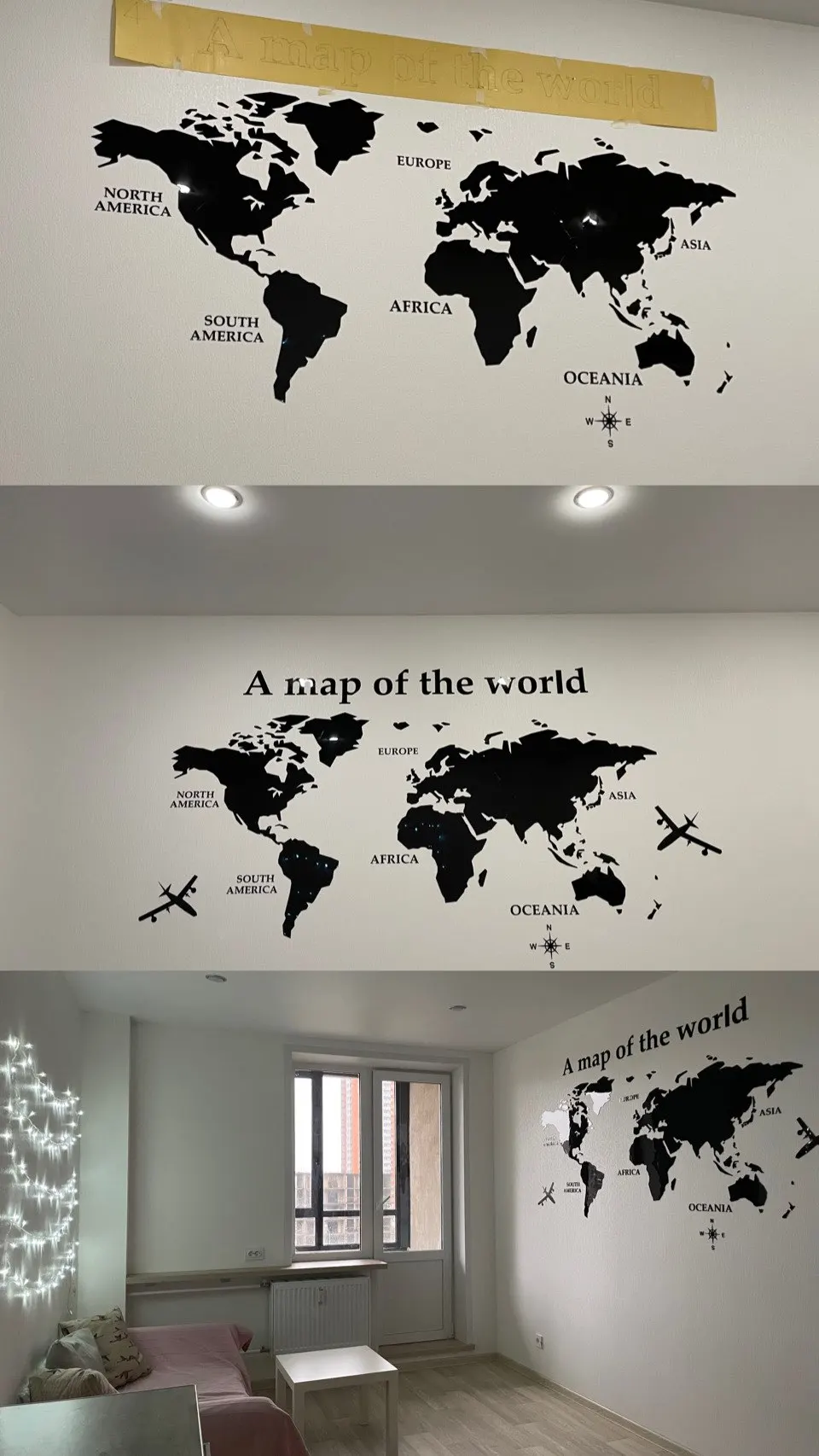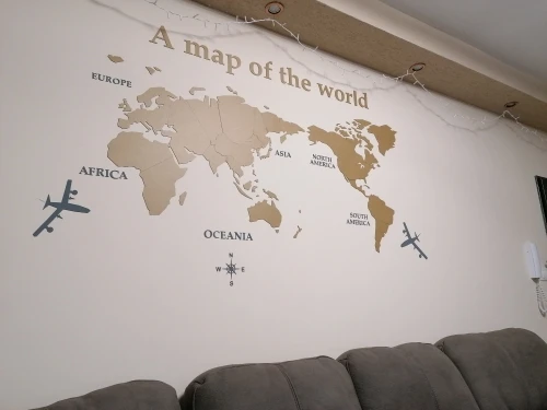 купил в размере 2,3х1.2. гладко как на фото сложить не получается - все равно видно границы между пазлами (не щели,а границы). Карта представлена в китайской версии, поэтому поменял местами листы маски - 3 поставил первым, чтобы Америки были слева (как на русских и европейских картах), но пропорции континентов все равно не такие, к каким привык. Для кого критично - можно найти версию европейской
