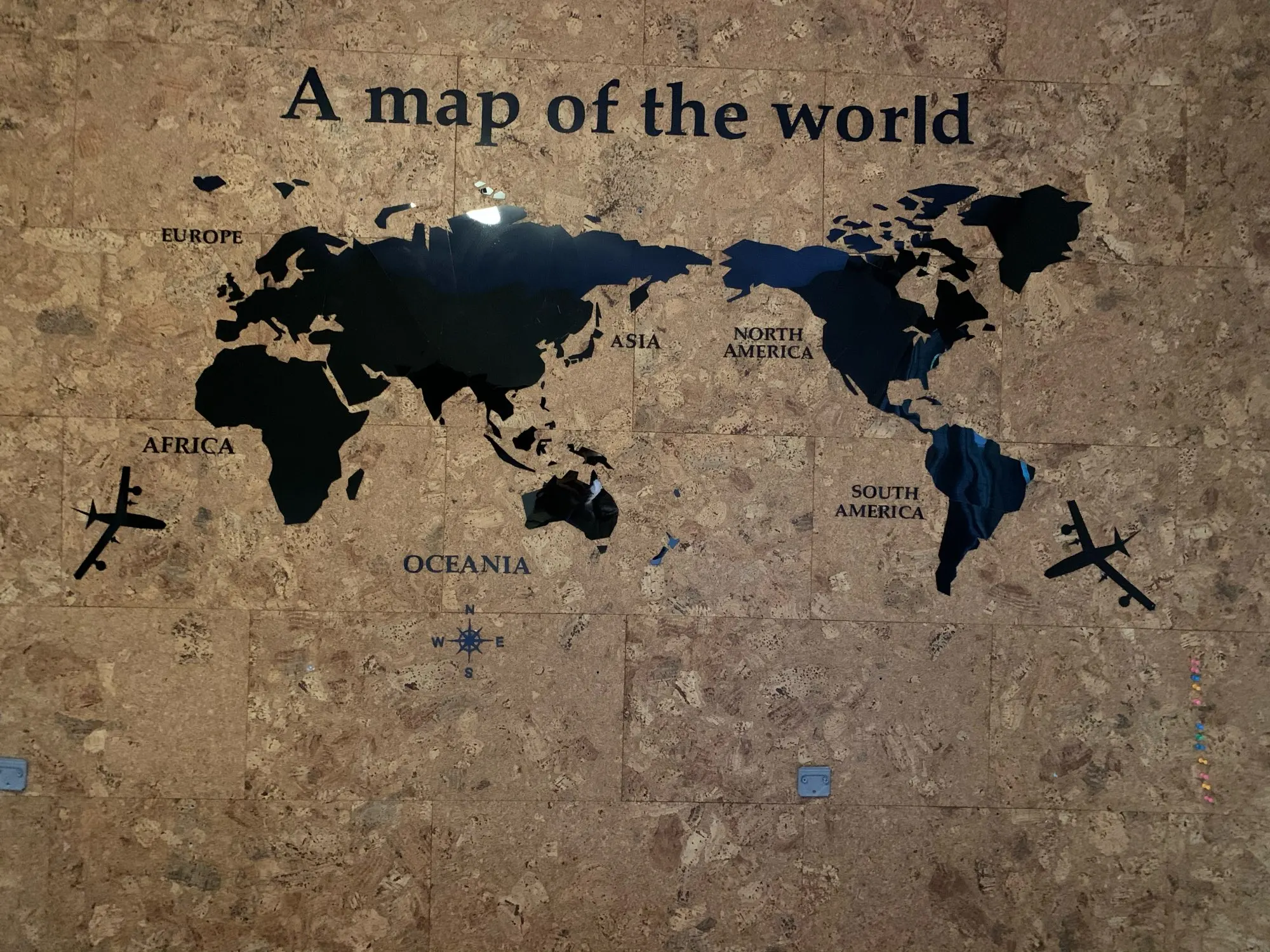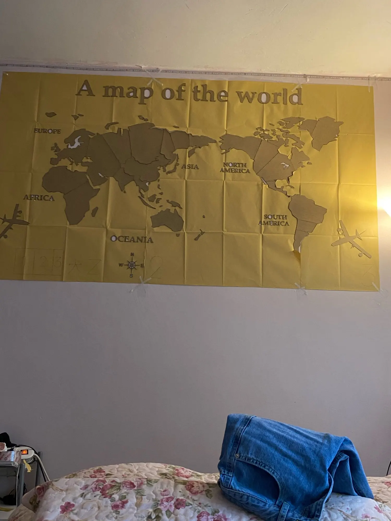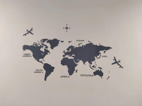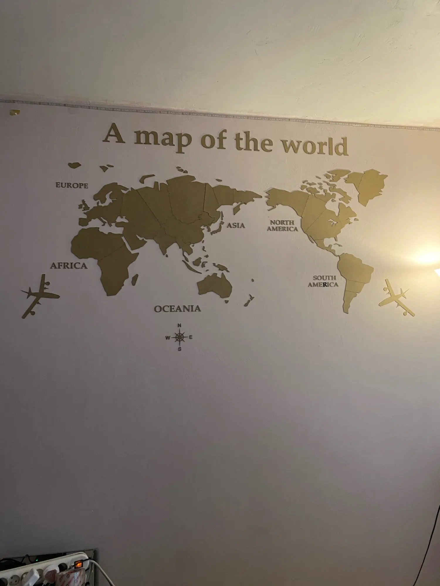 Great product! Map is great, the material is hard but thin. The template is perfect, if you put it up on the wall correctly sticking map is super easy. We were thinking between L and XL size, took L and we,re very happy with this size. Have a couch that is around 2.20 meters long, the wall is around 4x3 meters and L looks perfect, not too big. On our we glued some green plants, so it looks even better! Took 2 weeks to deliver.