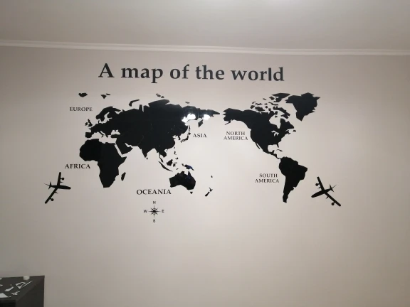 Смотрится не плохо. Если не придираться то отлично. Хорошо упаковано и все делали присутствуют. Вид карты нестандартный но это можно исправить ножницами и скотчем. Минус конечно в том что материки можно было не развивать на столько частей, стыки очень видны