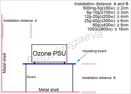 Озоновая трубка: вам нужно установить ее на изоляционную доску, вдали от металлической оболочки более 2 см. (Вы можете установить его на металлический чехол, в этот чехол вам нужно подключить Чехол к дополнительным заземляющим проводам)