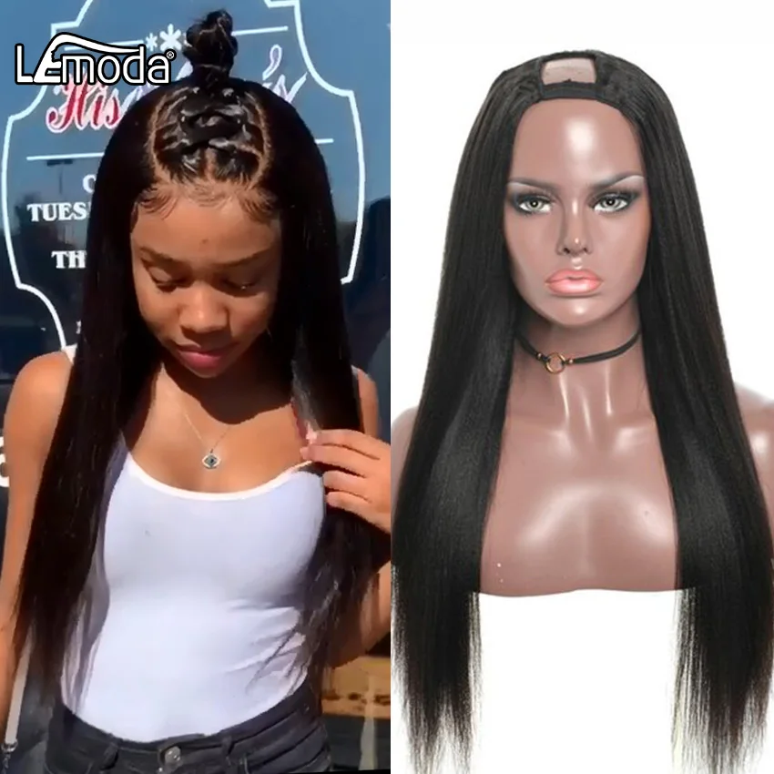 Парик с прямыми V-образными волосами, U-образные волосы для чернокожих женщин, Бразильский натуральный цвет, без клея, 28, 30 дюймов, Lemoda Bone, прямые волосы