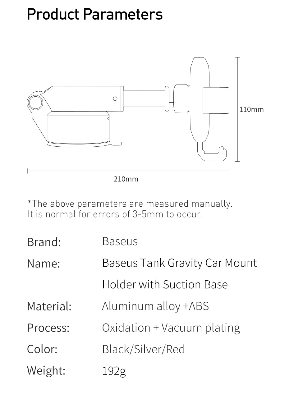 Гравитационный автомобильный держатель Baseus для телефонов 4,7-6,5 дюймов, универсальный автомобильный держатель для телефона с поворотом на 360 градусов и основанием на присоске